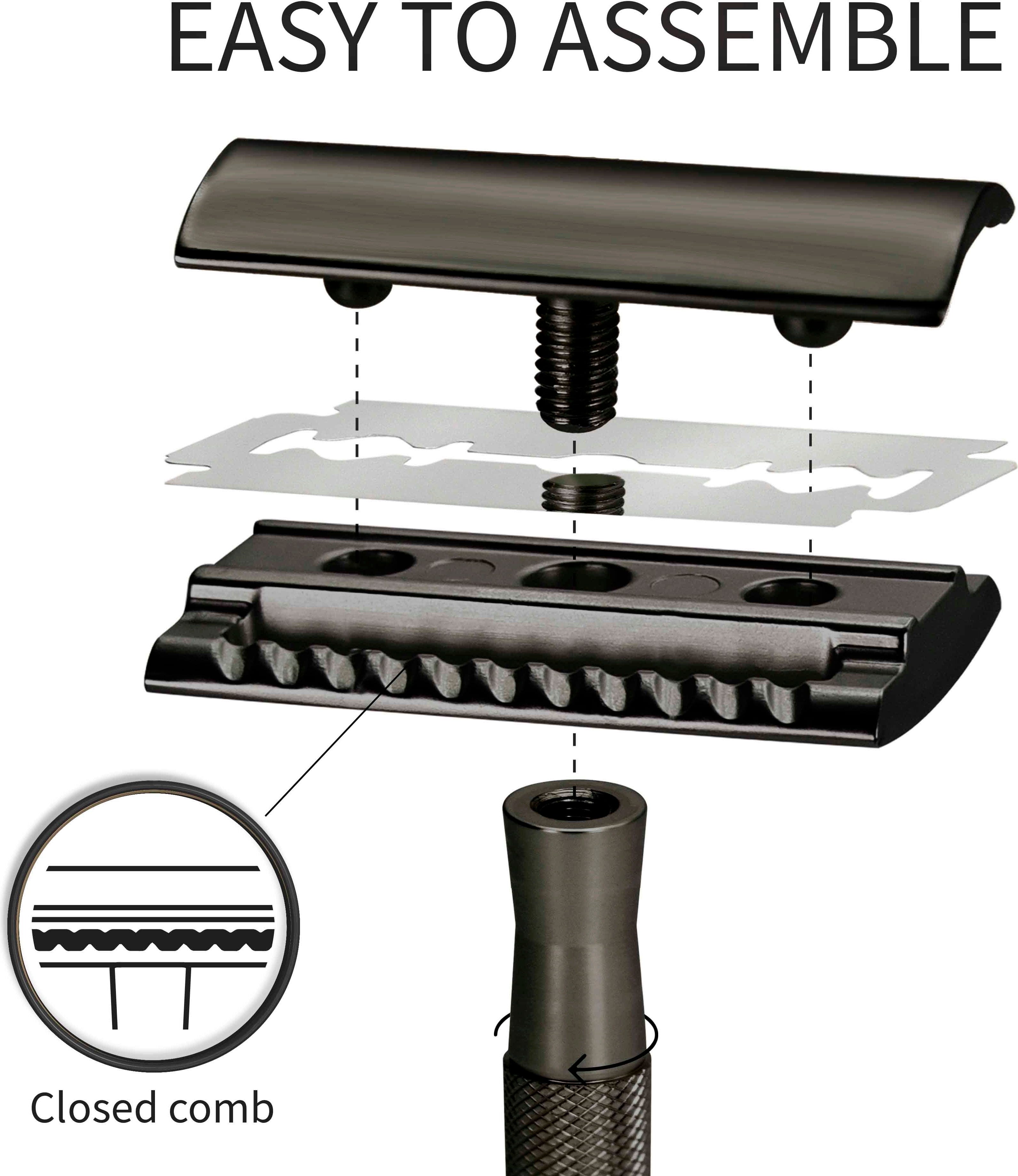 Bambaw Rasierhobel mit Rasierständer, Schwarz
