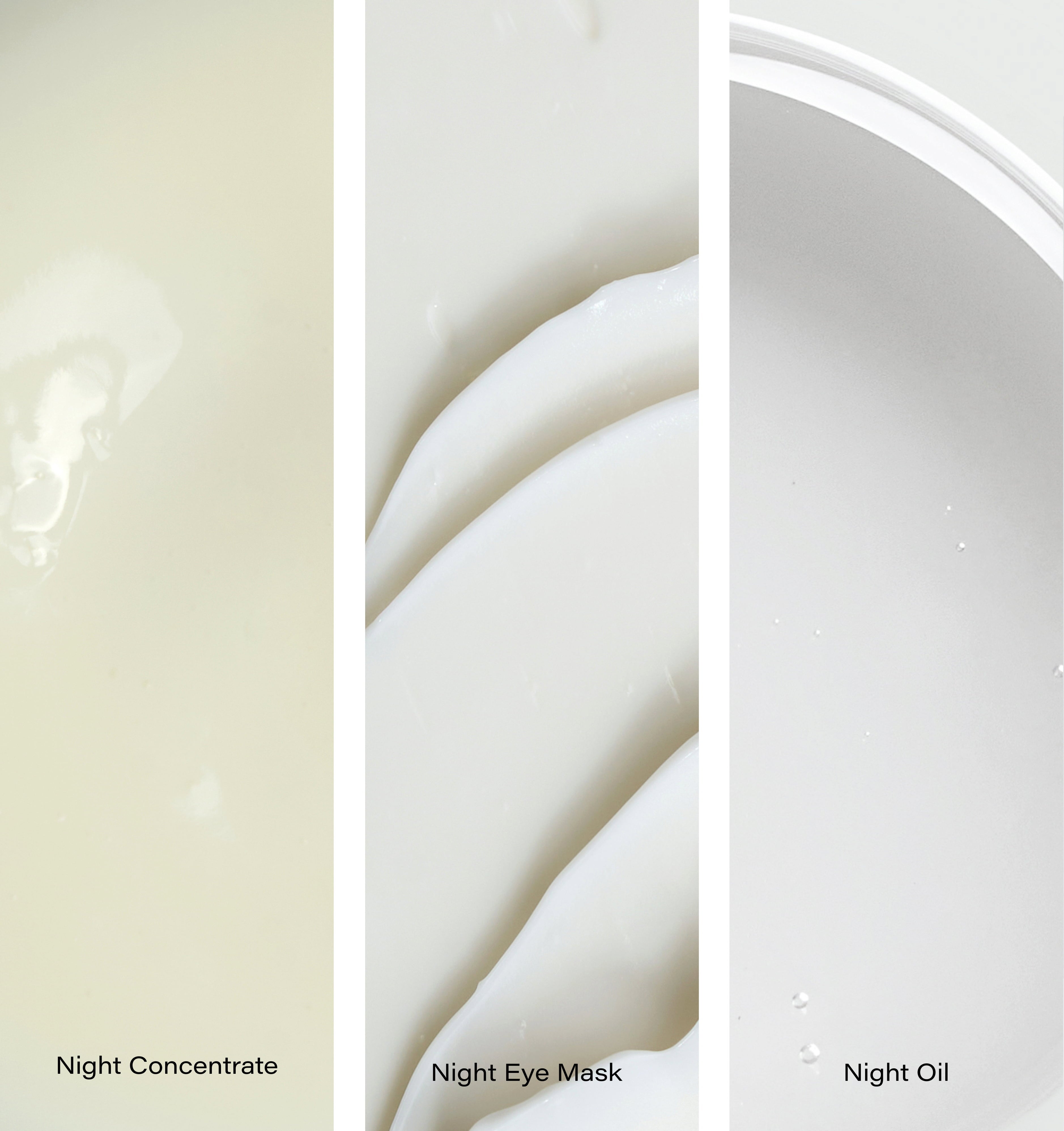 - Step 1: Night Concentrate Sheet Mask mit Althaea Rosea Stammzellen, Hyaluronsäure und Lavendel: straffende Eigenschaften, spendet Feuchtigkeit und lässt die Haut über Nacht glatter wirken.