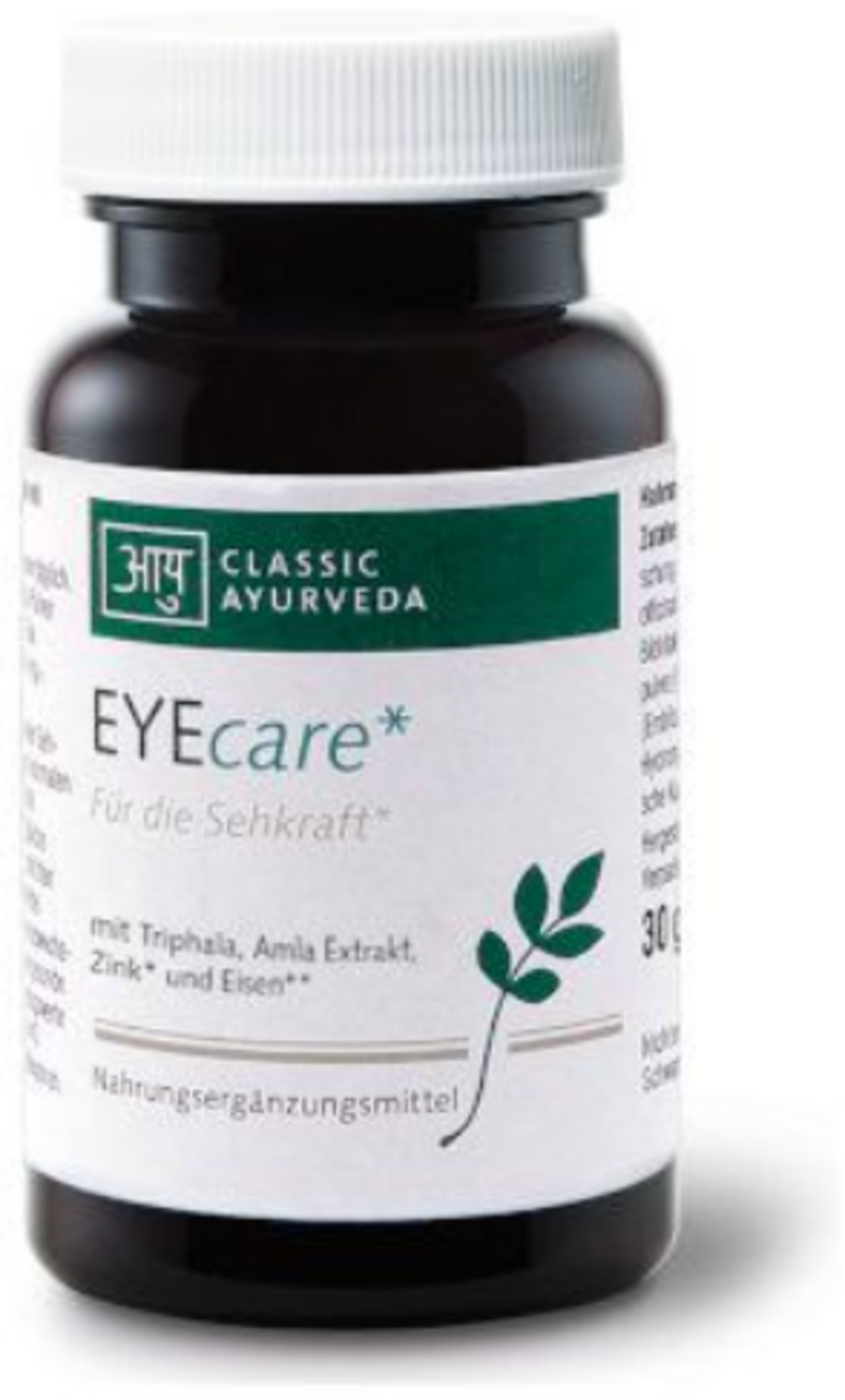 Selon la tradition ayurvédique, les ingrédients sont considérés en lien avec l’Alochaka Pitta et l’équilibre des trois doshas (Tridoshas). Le zinc contribue au maintien d’une vision normale, tandis que le fer favorise un transport normal de l’oxygène dans l’organisme. La dose journalière recommandée fournit également 125 mg de tanins ainsi que des composants végétaux issus d’haritaki et de bibhitaki.
