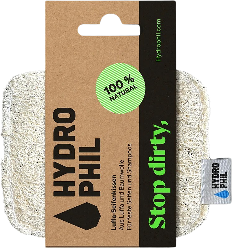 Ce coussin en loofah de Hydrophil est fabriqué à la main en Espagne à partir du concombre luffa. Grâce à la capacité d'absorption optimale du matériau, les savons posés dessus sèchent en un rien de temps ! L'eau et les résidus de savon s'écoulent simplement à travers le matériau perméable.