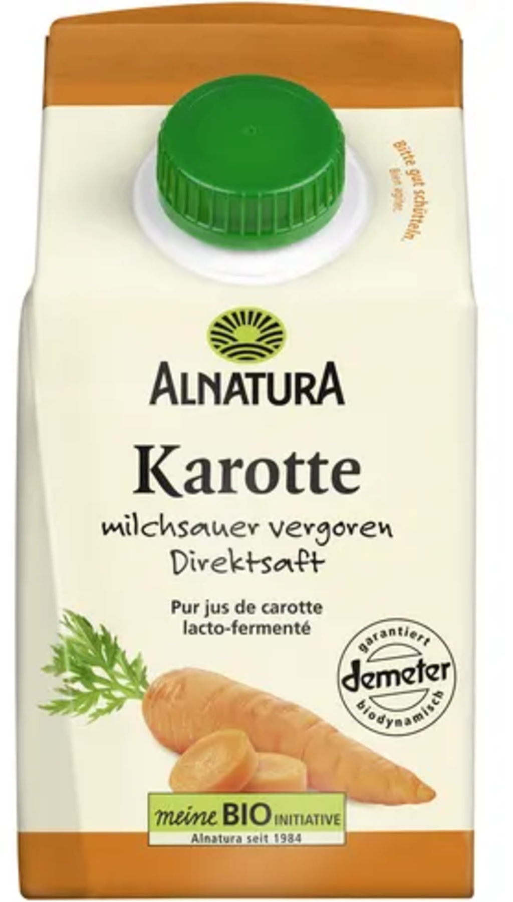 100 procent direct sap van wortelen - het biologische wortelsap van Alnatura is gefermenteerd met melkzuurbacteriën en is daarom van nature rijk aan provitamine A. Je kunt het wortelsap puur drinken, gebruiken voor mixdrankjes of het verfijnen van jouw gerechten.