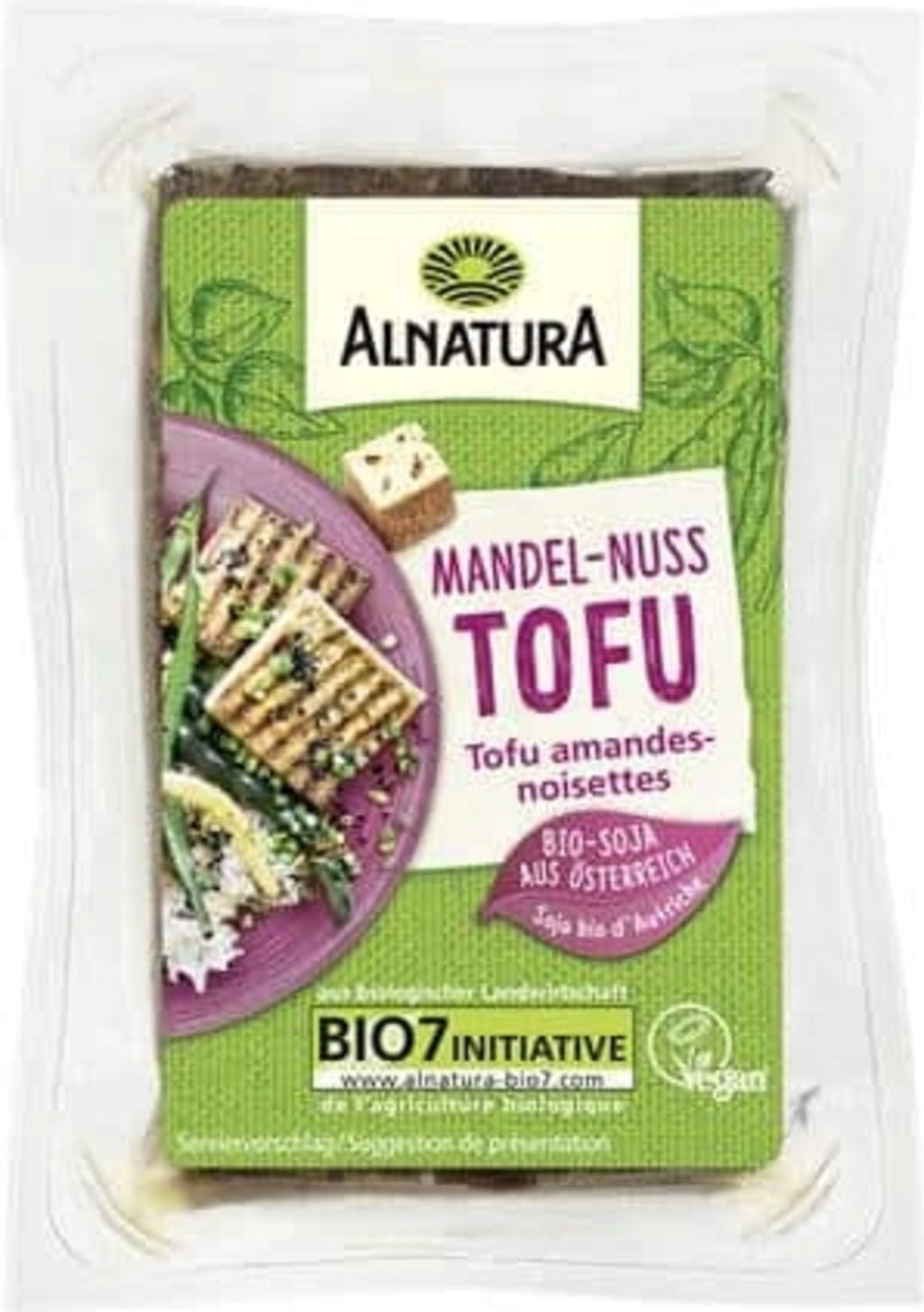 Deze Amandel-Hazelnoot Tofu is een echte delicatesse: gemaakt van Oostenrijkse sojabonen, doordrenkt met stukjes amandel en hazelnoot, zacht gerookt op beukenhout en heerlijk makkelijk te snijden. Als topping, in een salade, in een wok, in een vegetarische curry of krokant gebakken in een pan - je tovert snel een gezonde maaltijd tevoorschijn! De ongekoelde houdbaarheid is praktisch, zo heb je altijd een heerlijk ingrediënt op voorraad.
