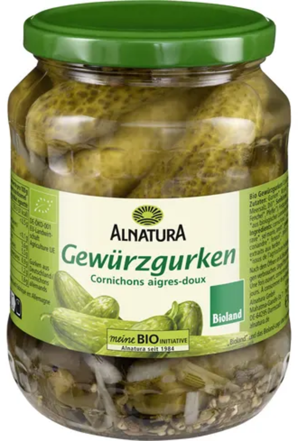 Augurken smaken heerlijk als tussendoortje of bij een picknick, geeft smaak aan aardappelsalades, hamburgers en nog veel meer. De biologische augurken van Alnatura worden in Duitsland geteeld in Bioland kwaliteit en smaken heerlijk aromatisch met hun zoetzure smaak. Ze zijn op smaak gebracht met kruiden en specerijen in het potje.