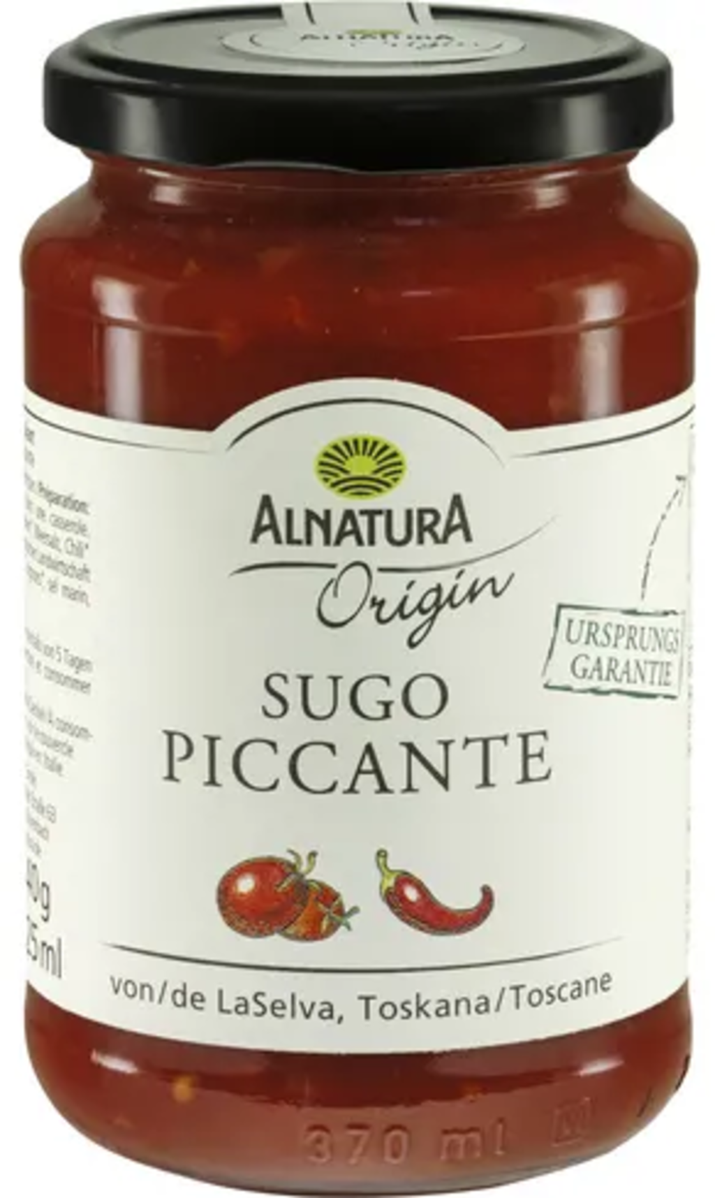 Houd je van wat pittiger, probeer dan de biologische Origin Sugo Piccante van Alnatura. De pittige tomatensaus is verfijnd met chili en heeft een lichte kruidigheid. Het past perfect als pizzabodem, in pastasauzen en lasagne.