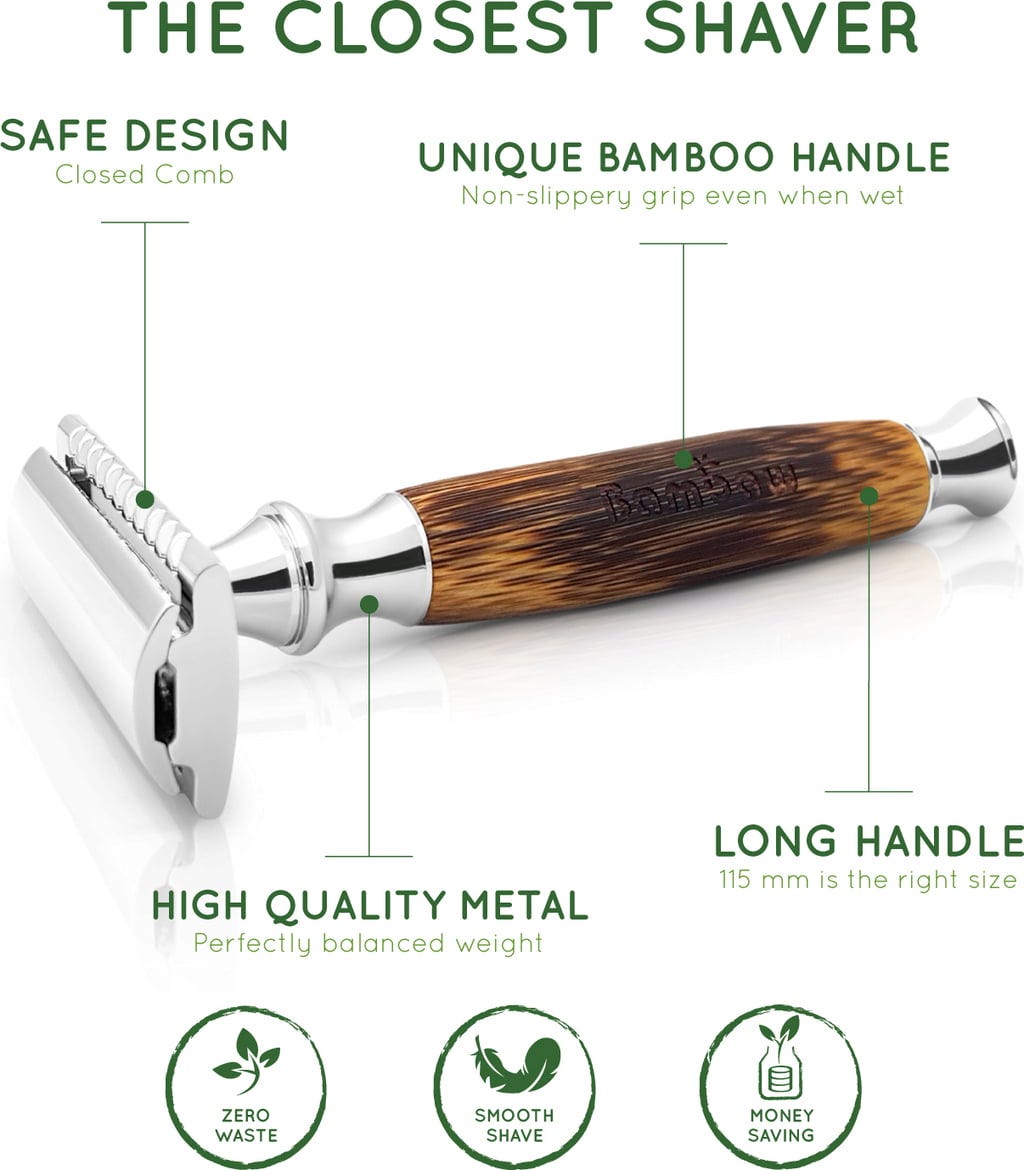 Het bamboe veiligheidsscheermes is de ideale oplossing om wegwerpscheermesjes uit de badkamer te weren. Het is plasticvrij en duurzaam, geschikt voor zowel mannen als vrouwen en garandeert een bijzonder zachte scheerbeurt. Het bamboe handvat ligt comfortabel in de hand en met een enkel mesje zorgt het veiligheidsscheermes voor een perfecte scheerbeurt, zelfs voor beginners. Het scheren met gesloten hoofd maakt het scheren minder agressief en zelfs gemakkelijker. De meegeleverde mesjes van Astra zijn gemaakt van roestvrij staal en zijn gemakkelijk te recyclen. Afhankelijk van de dikte van je haar en hoe vaak je je scheert, gaat een mesje enkele weken of zelfs maanden mee.