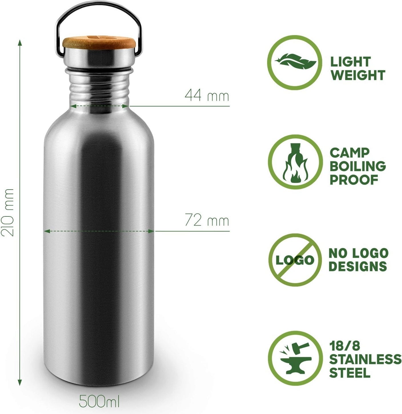 In een eenvoudig en eigentijds ontwerp. De fles is gemaakt van roestvrij staal met een deksel van bamboe. De fles bevat geen BPA of andere schadelijke chemicaliën. Na gebruik kan de fles eenvoudig worden schoongemaakt met een flessenborstel.