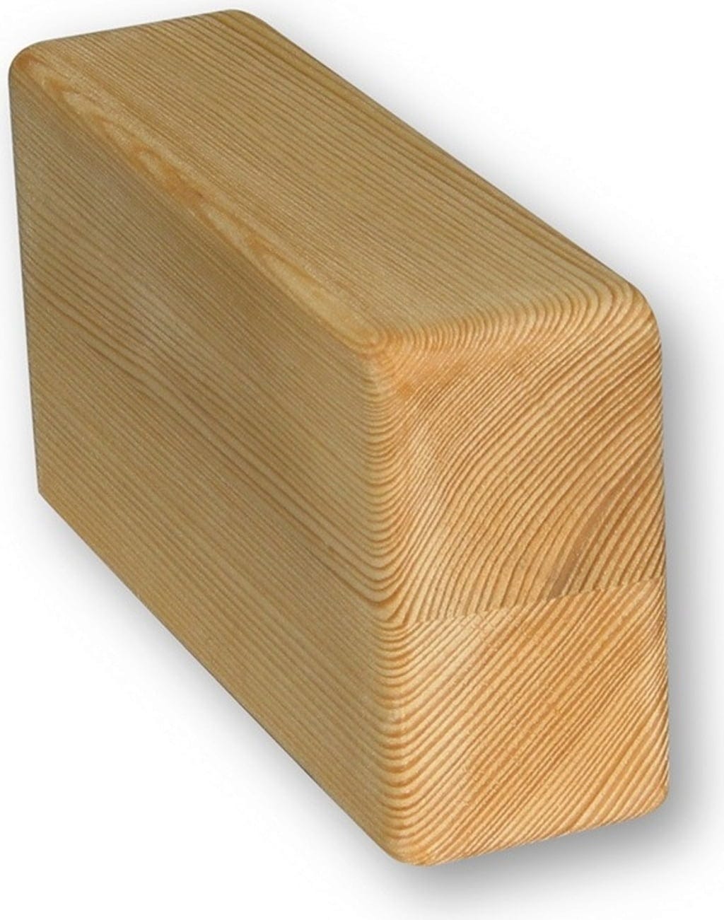 Het yogablok van geolied sparrenhout is ideaal voor het stabiliseren van bepaalde yogahoudingen zoals de driehoekshouding. De hoeken zijn opzettelijk afgerond.