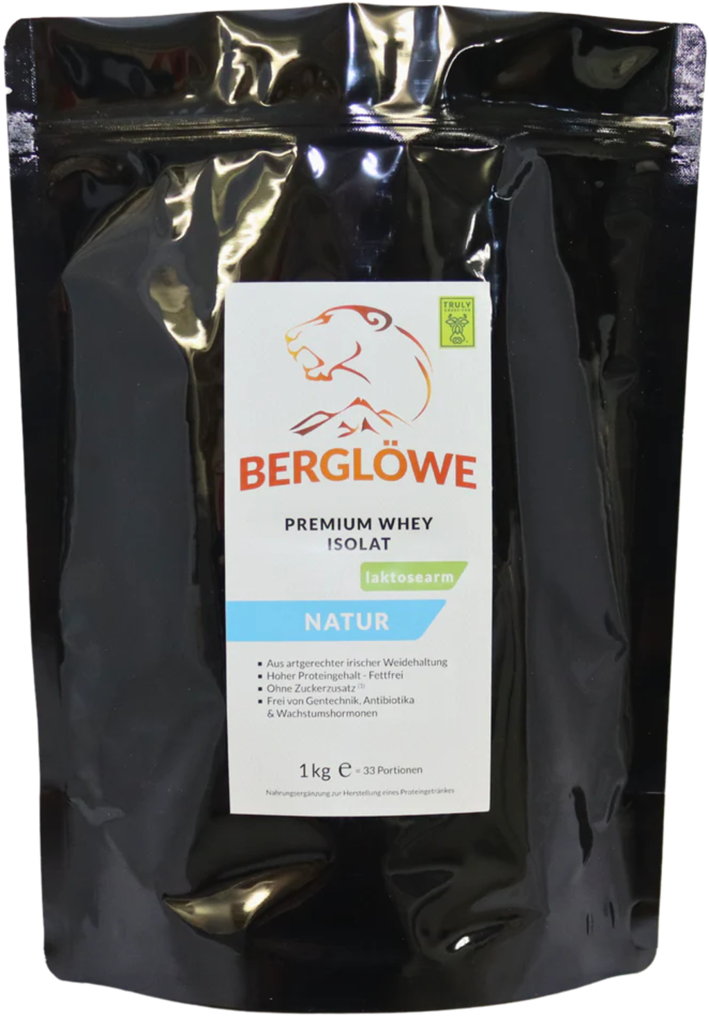 Het Premium Whey Isolate van Berglöwe met zijn laag-lactose formule wordt uitsluitend verkregen uit de melk van Ierse weidekoeien en vervolgens voorzichtig verwerkt tot een natuurlijke wei met behulp van cross-flow microfiltratie.