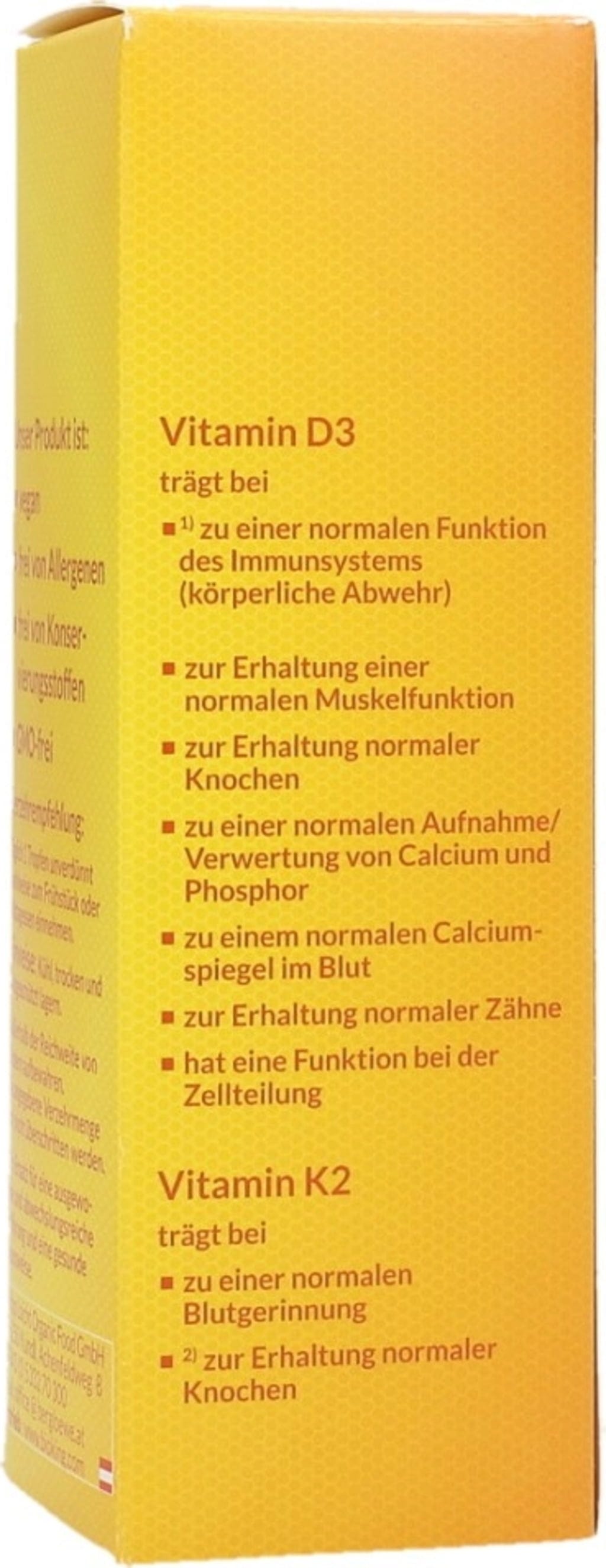 Deze olie van hoge kwaliteit combineert twee belangrijke vitamines. Slechts 1 druppel per dag levert 25 µg vitamine D, die wordt verkregen uit korstmossen. De druppels zijn daarom ideaal voor vegetarische en veganistische diëten.