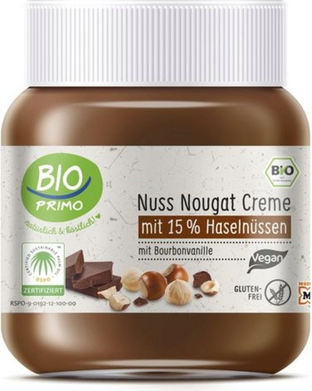 Of het nu gaat om gebakjes of tussendoortjes op een lepel - niemand schuift de notennougatcrème van Bio Primo aan de kant! Nootachtig, chocoladeachtig, aangenaam zoet en smeltend in de mond, deze creatie verwent zelfs de meest veeleisende zoetekauw. Het glutenvrije recept maakt gebruik van duurzaam geproduceerde palmolie en echte bourbon vanille. Luxe met een vleugje exotisch wanneer je maar wilt!