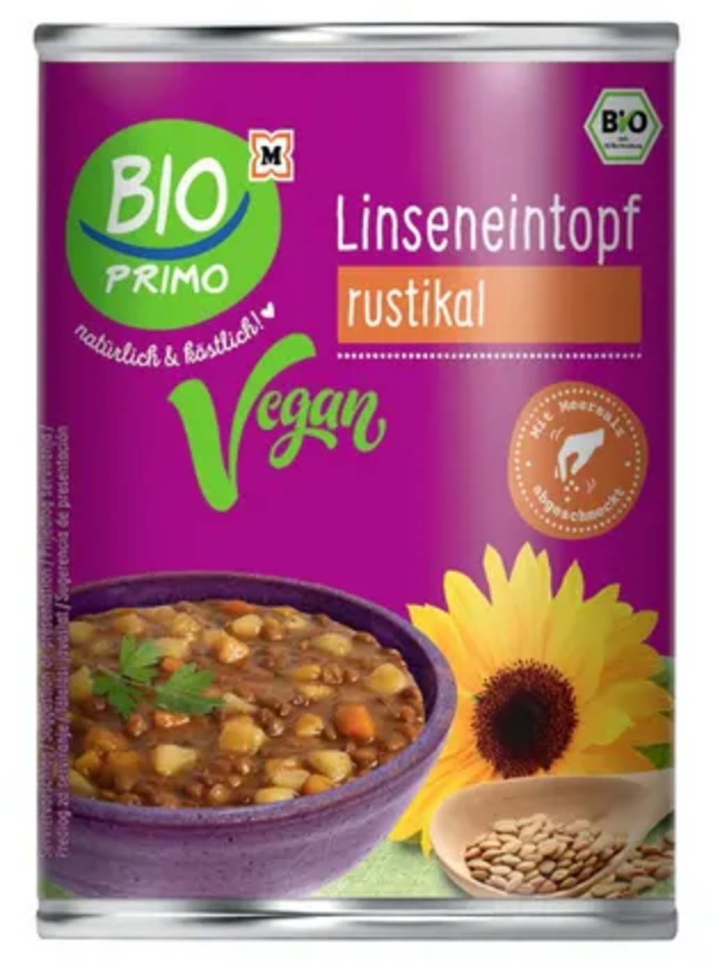 BIO PRIMO Biologische Kant-En-Klare Vegan Linzenstoofpot, 400 g