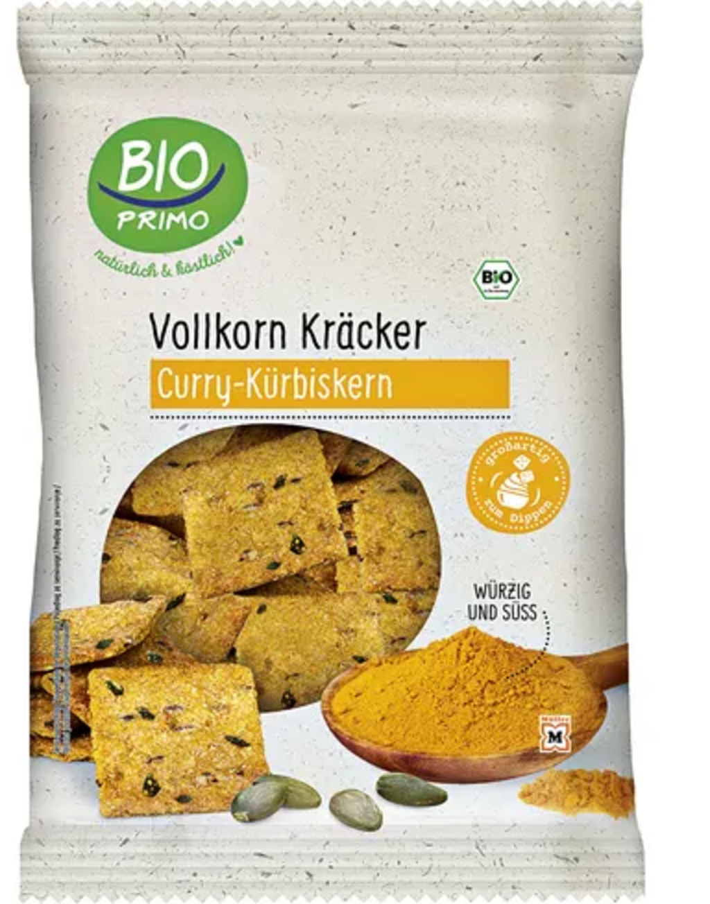 Met deze heerlijke biologische volkoren crackers breid je je snackassortiment op een bijzonder bijzondere manier uit! Ze zijn niet alleen superkrokant, maar bieden ook een welkome afwisseling met hun kruidig-zoete currysmaak. Verfijnd met kleine stukjes pompoenpitten, ook ideaal om te dippen!