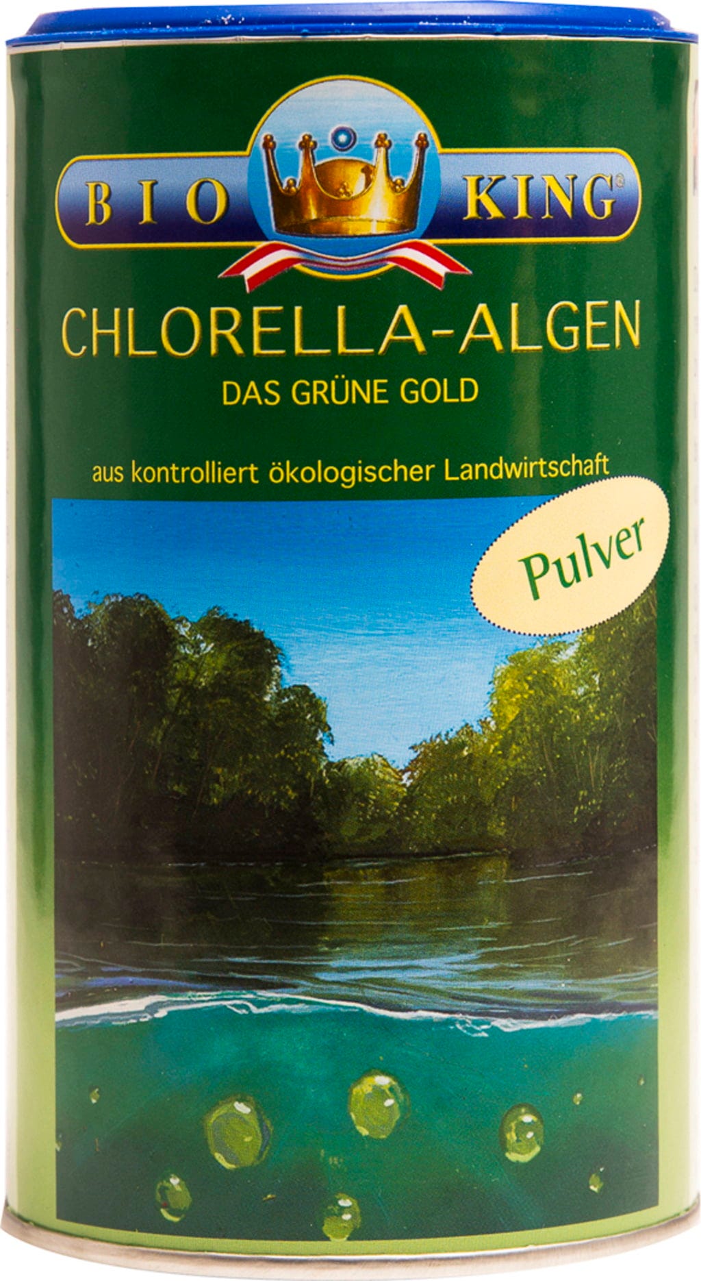 De chlorella alg is een eencellige microalg die gekweekt wordt in zoet water. BioKing gebruikt alleen chlorella uit gecertificeerde biologische aquacultuur, die onder optimale klimaatomstandigheden wordt gekweekt en voorzichtig wordt gedroogd om de beste kwaliteit te bieden.