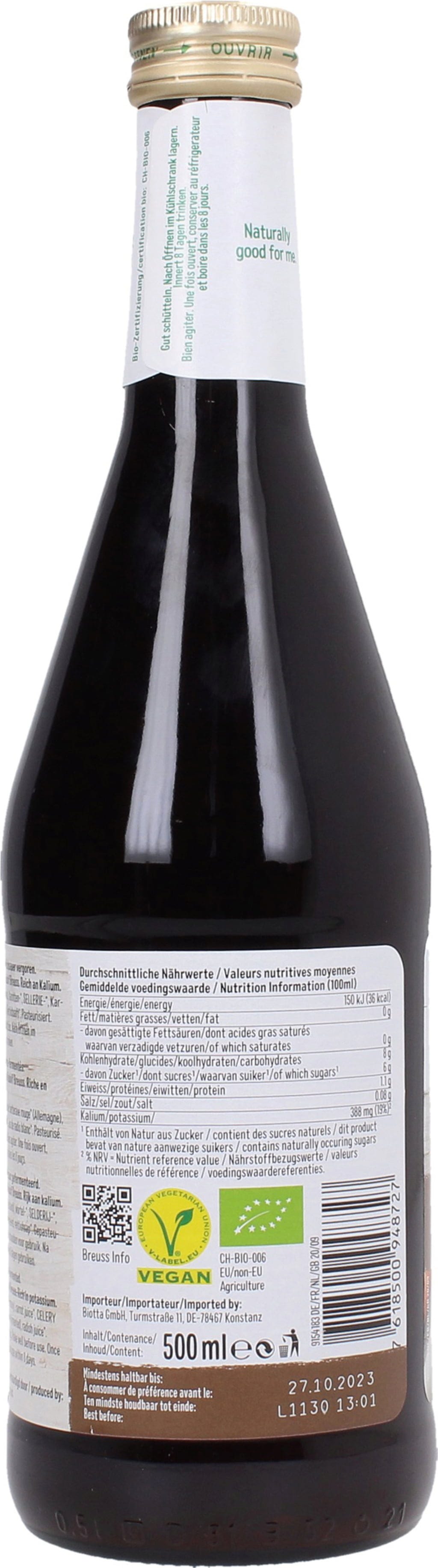 Dit Breuss groentesap is een combinatie van kalium en verschillende groentesappen. Het sap is natuurlijk geproduceerd, veganistisch en vers en voorzichtig verwerkt.