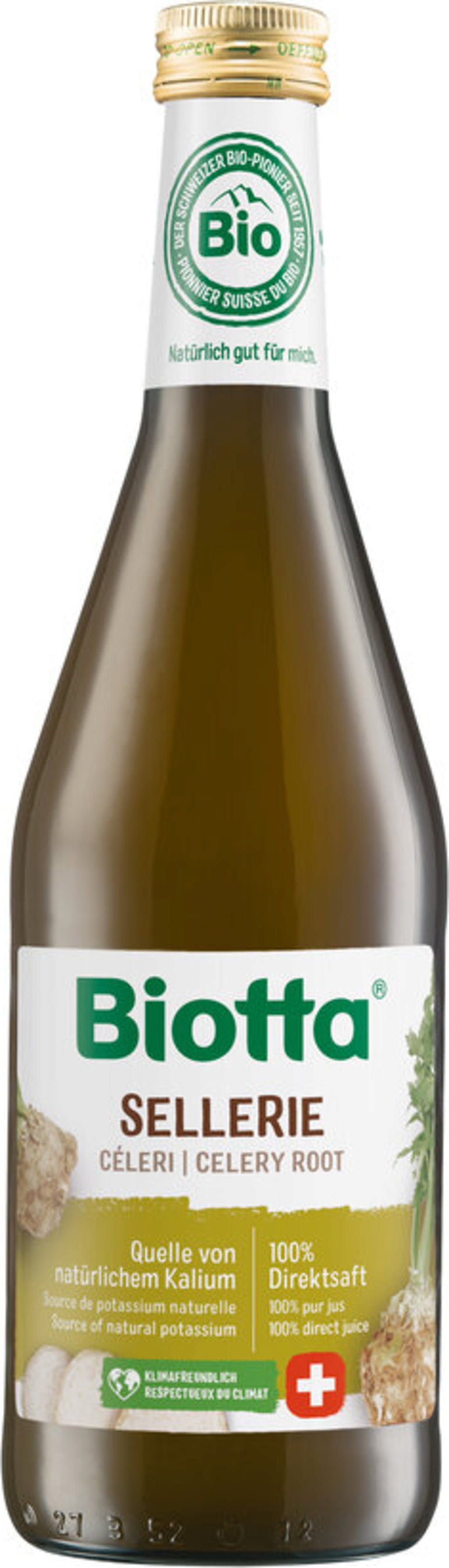 Dit knolselderijsap is gemaakt van biologische knolselderij uit de Thurgau regio in Zwitserland, die direct na de oogst verwerkt wordt door de Biotta fabriek. Dankzij deze voorzichtige en snelle verwerking blijven de smaken bijzonder goed behouden, wat zorgt voor een volle smaak. Knolselderij is ook een natuurlijke bron van kalium.