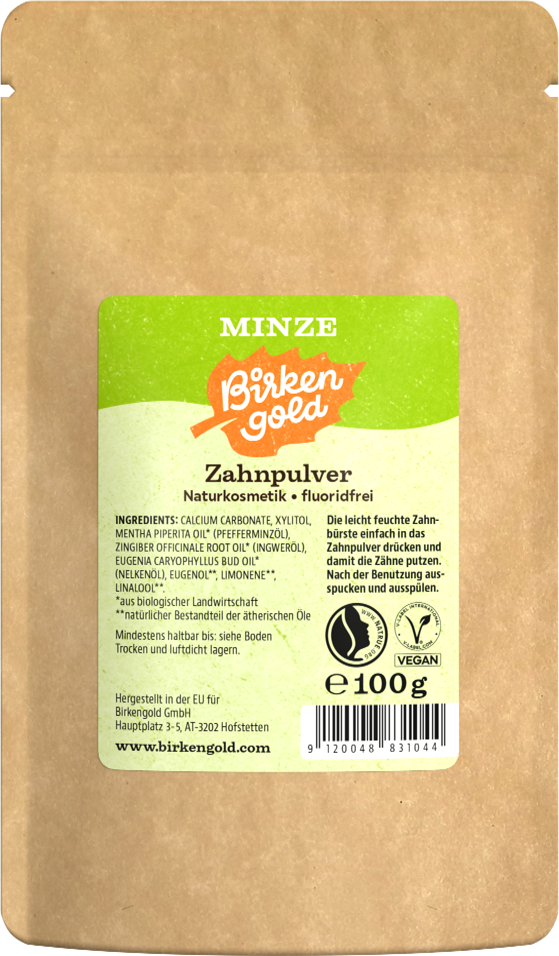 Het tandpoeder met Birkengold® xylitol en verfrissende muntsmaak is niet alleen geschikt voor volwassenen, maar ook voor kinderen vanaf 1 jaar. Samen met calciumcarbonaat en essentiële oliën reinigt het mild, behoudt het tandglazuur en bevordert het een alkalisch milieu in de mond - slechte omstandigheden voor cariës en parodontale bacteriën!