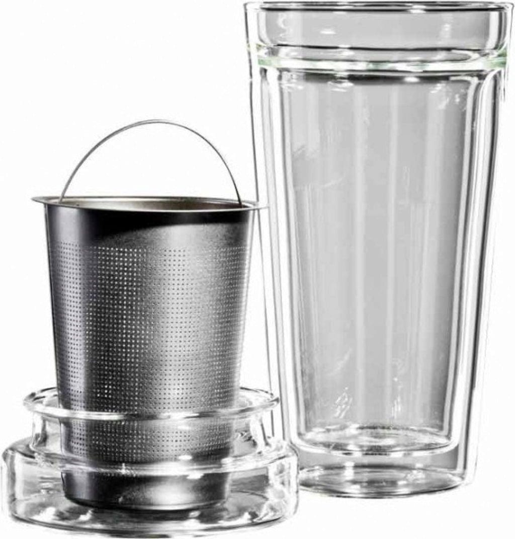 Ideaal voor je eigen persoonlijke theeceremonie. De complete set bestaat uit een slank theeglas, een roestvrijstalen zeef met handvat en een perfect passend glazen deksel. Gemaakt van dubbelwandig glas.