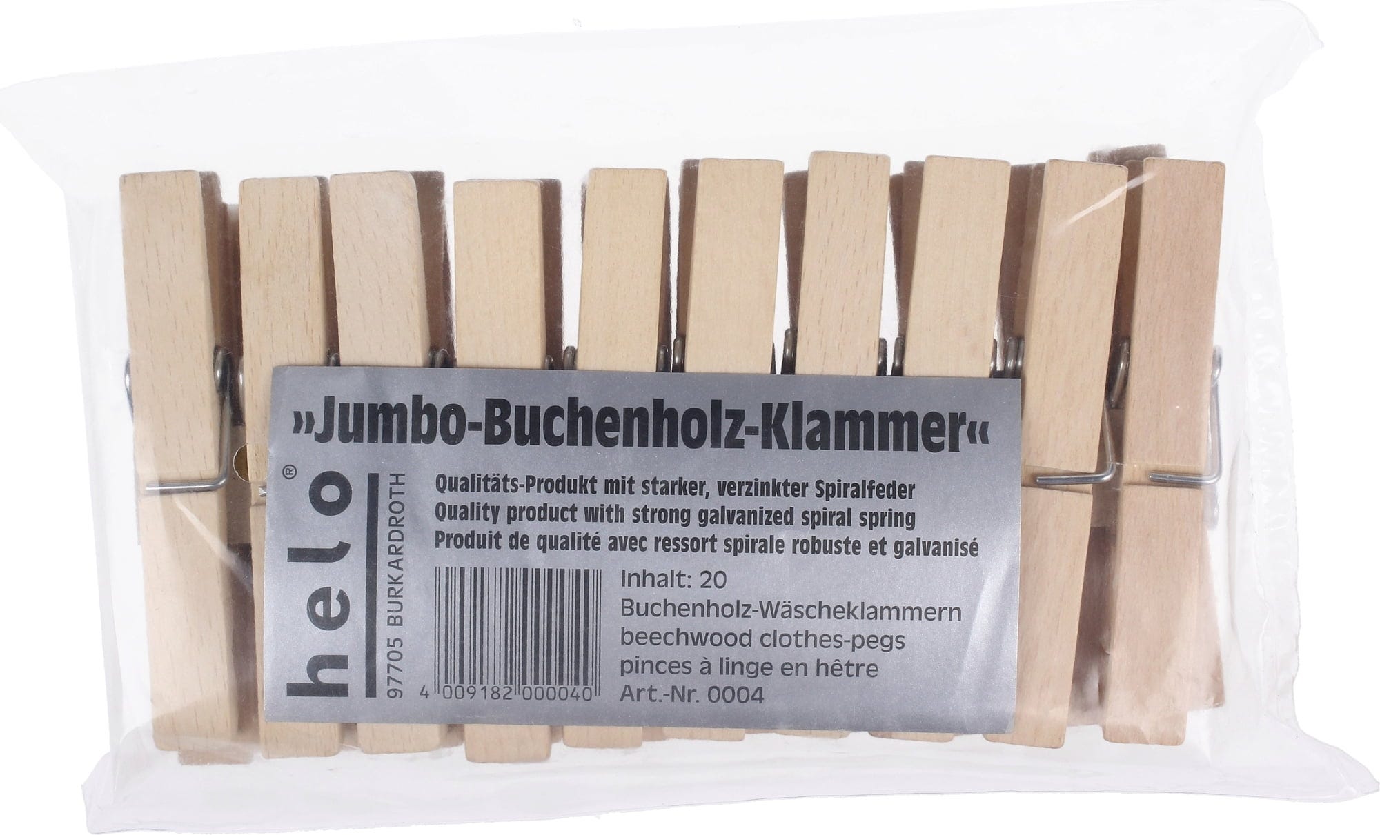 Deze grote, stevige wasknijpers van gewaxt beukenhout zorgen voor een bijzonder goede houvast aan de waslijn. De sterke spiraalveren zijn roestvrij. De wasknijpers zijn verkrijgbaar met of zonder katoenen zakje.