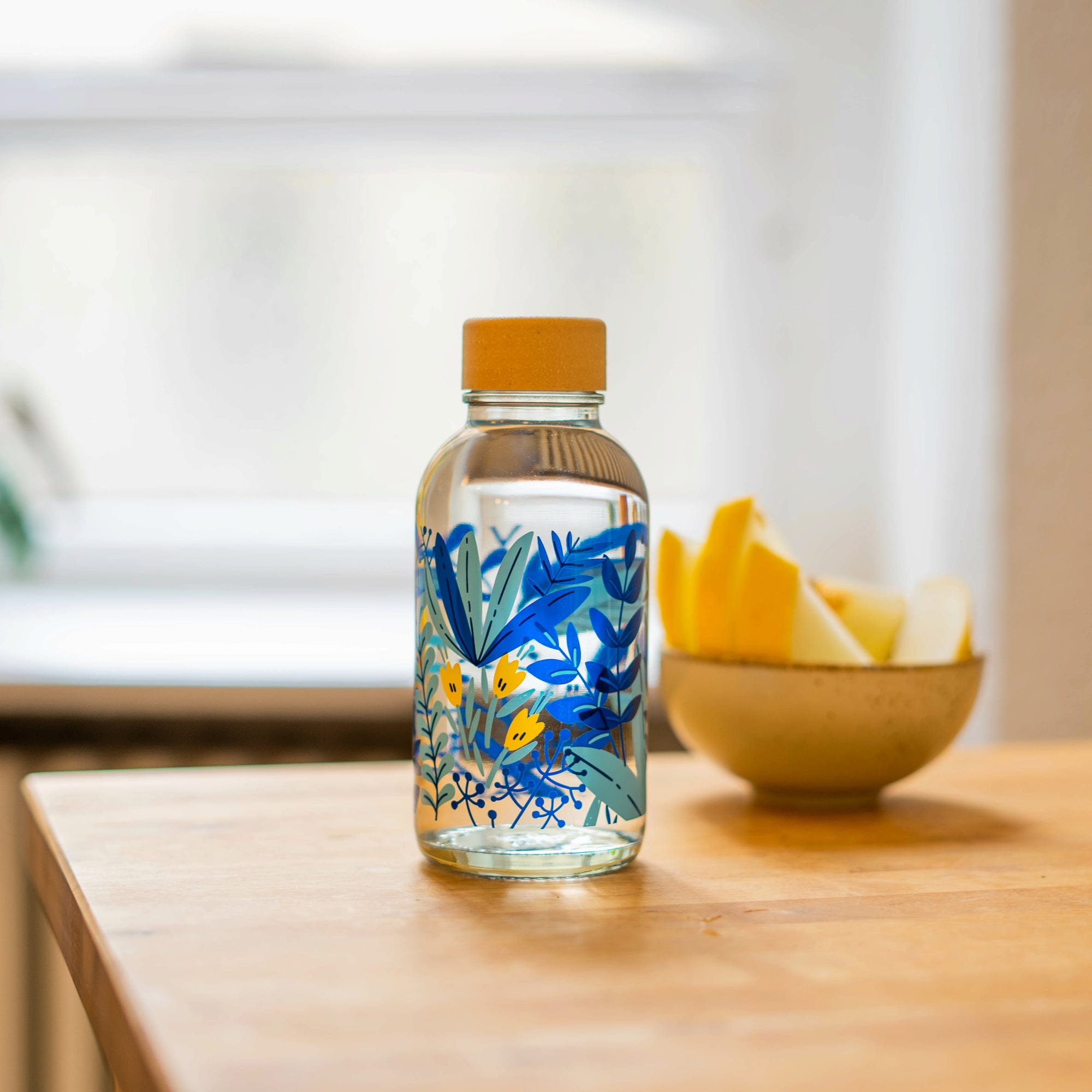 De drinkfles van robuust glas in een prachtig jungledesign is de ideaal voor in je handtas. Hij heeft een inhoud van 0,4 liter en is daarom ook geschikt voor in de schooltas.