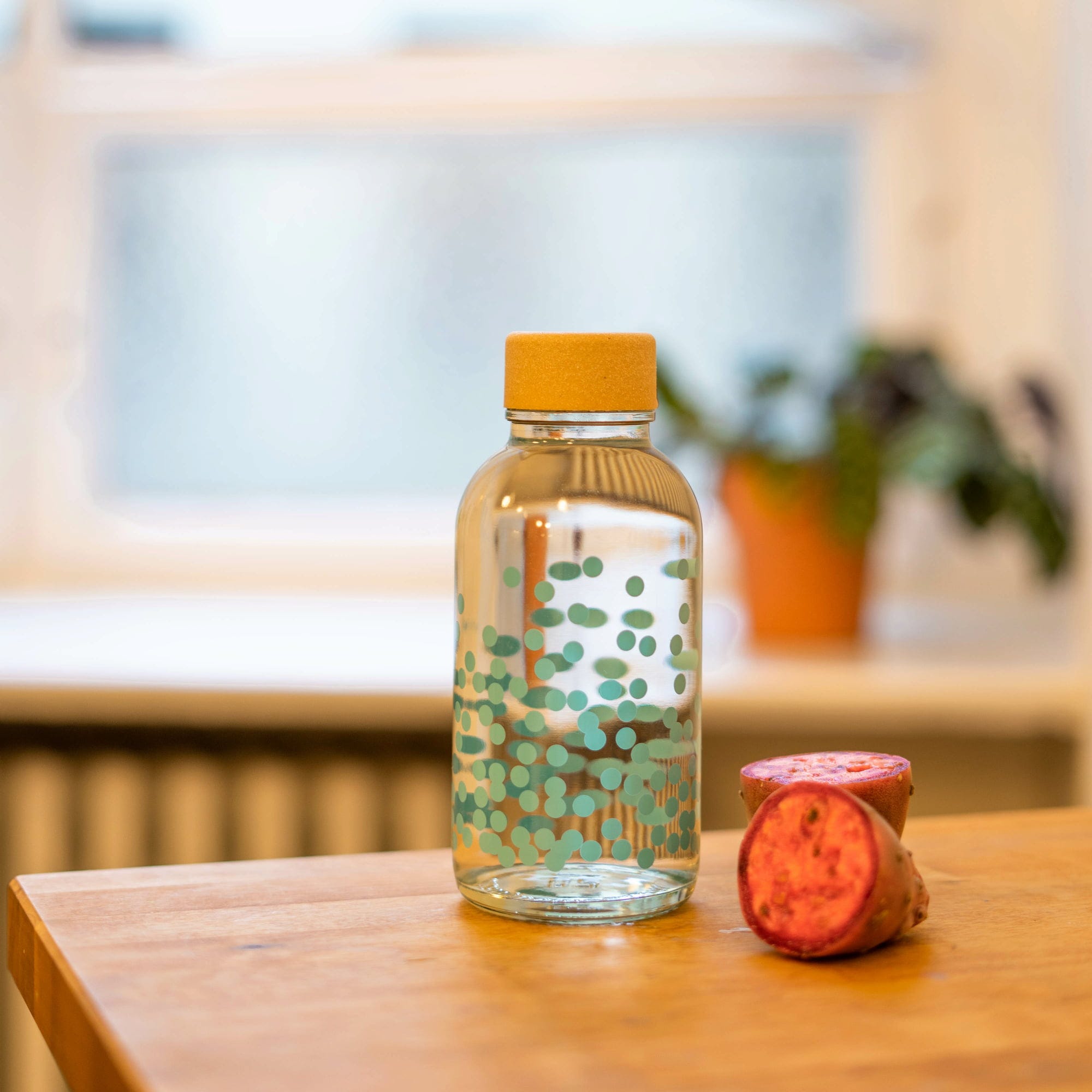 Zo vrolijk kan water drinken zijn! Deze drinkfles van stevig glas met een kleurrijk bubbeldesign is de ideale metgezel voor in je handtas. Met een inhoud van 0,4 liter is ze ook perfect geschikt voor in de schooltas of rugzak van de kleuterklas.
