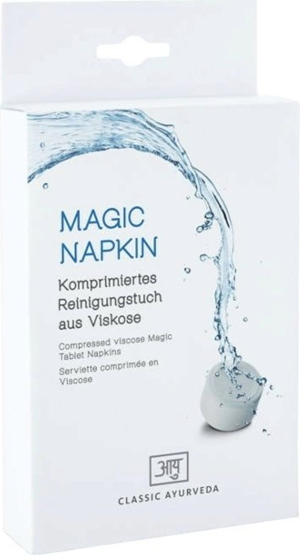 De Magic Napkin is perfect voor op reis, omdat hij voor gebruik kan worden ingepakt als een compact zakje. Pas als het in contact komt met water zwelt het op en ontvouwt het viscosedoekje zich. De bijzonder zachte manier om het gezicht te reinigen en de hypoallergene eigenschap spreken absoluut in het voordeel van het product.