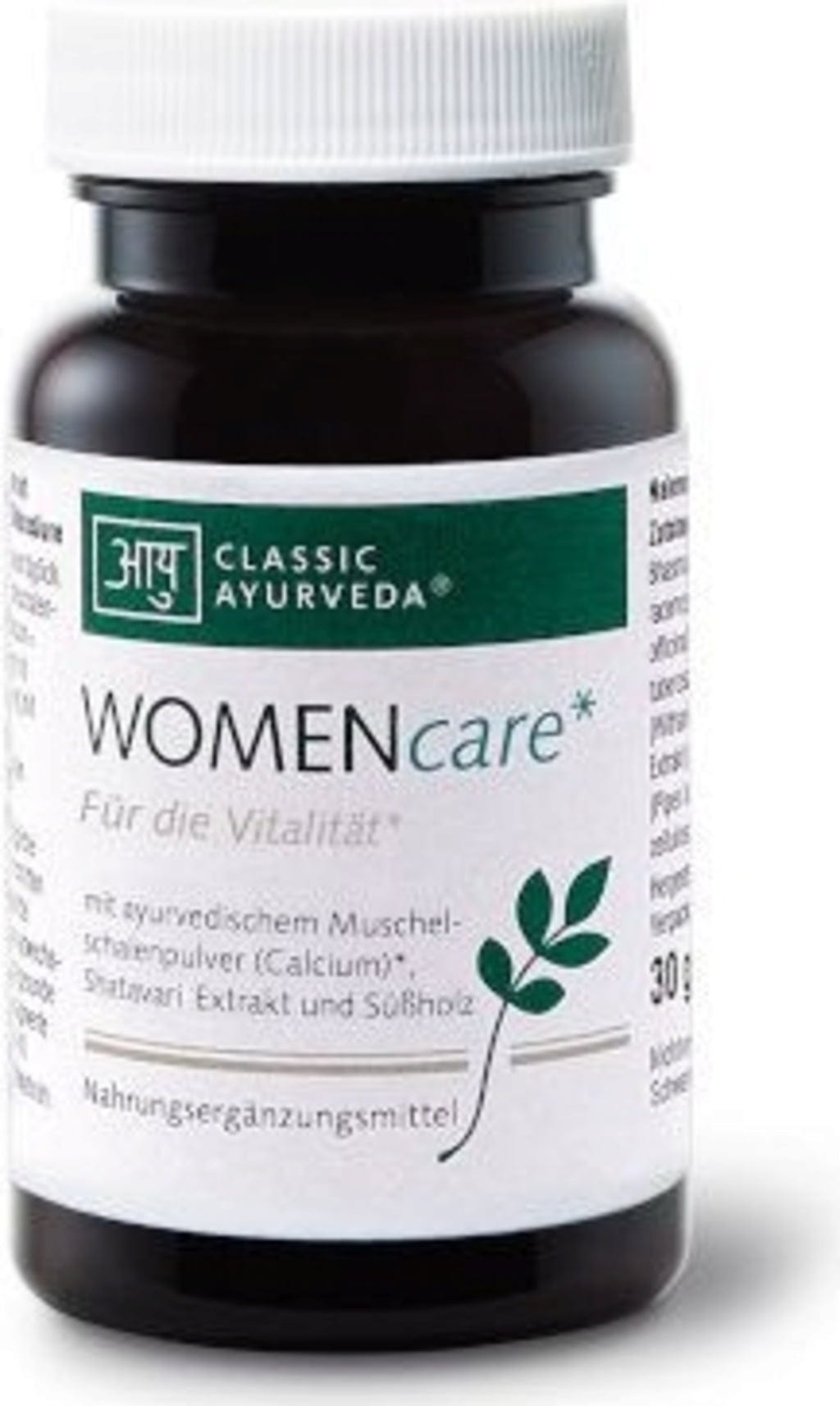 De WOMENcare-capsules van Classic Ayurveda combineren mineraal schelpenpoeder met een selectie van traditionele kruidenextracten. De formule is gebaseerd op shatavari en vidari kanda, aangevuld met zoethout, brahmi en ashwagandha. Venkel maakt de samenstelling compleet ter ondersteuning van de dagelijkse voeding.