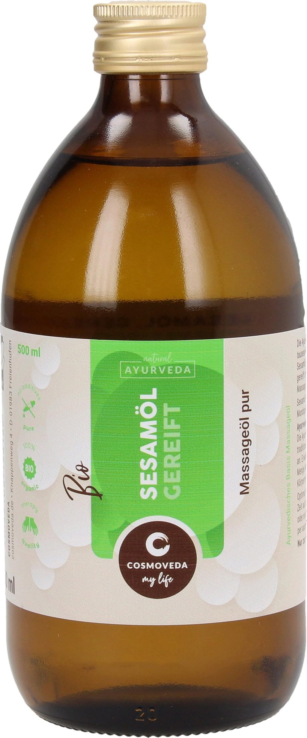 Sesamolie - al duizenden jaren bekend en gebruikt als massageolie in de Ayurveda. Cosmoveda's Sesamolie is gerijpt volgens traditionele methoden en is daarom een eersteklas, biologische massageolie die geschikt is voor het masseren van alle delen van het lichaam.