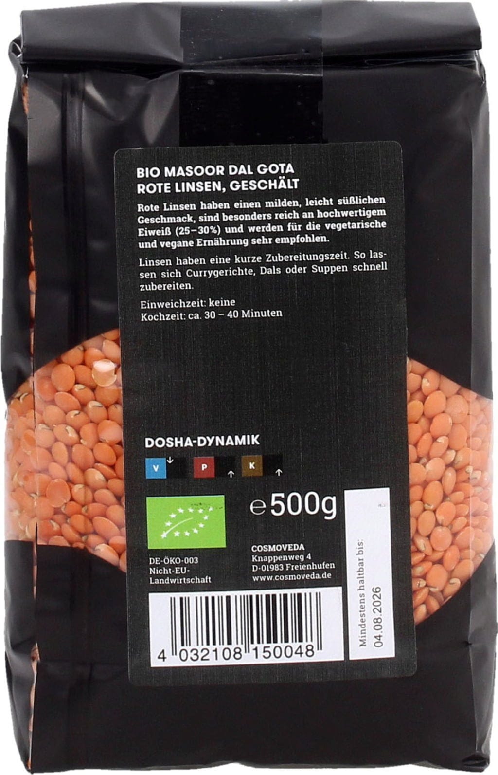 Cosmoveda Masoor Dal Gota - Bio Rode Linzen, Gepeld, 500 g