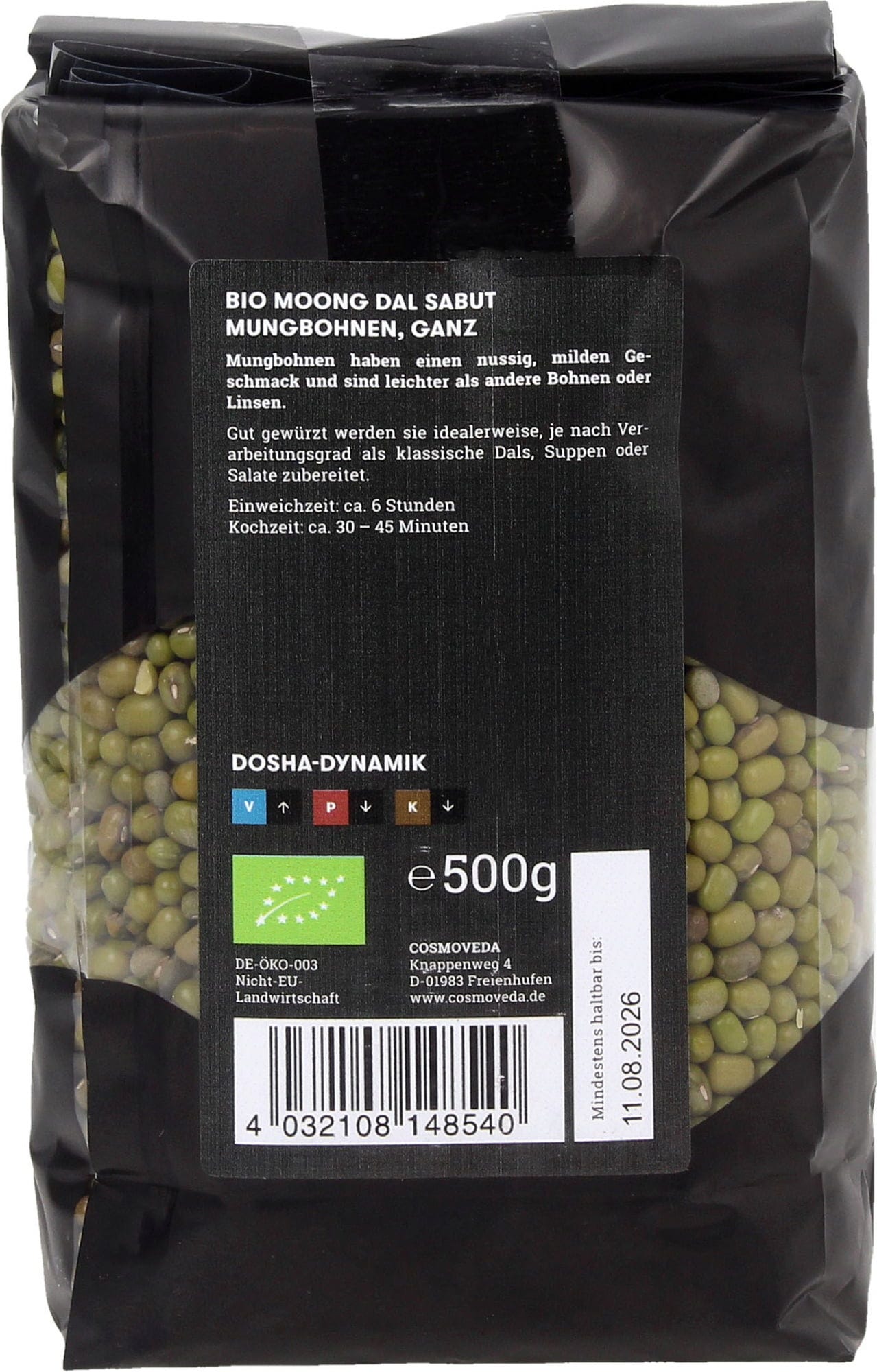 Cosmoveda Moong Dal Sabut - Bio Mungbonen, 500 g