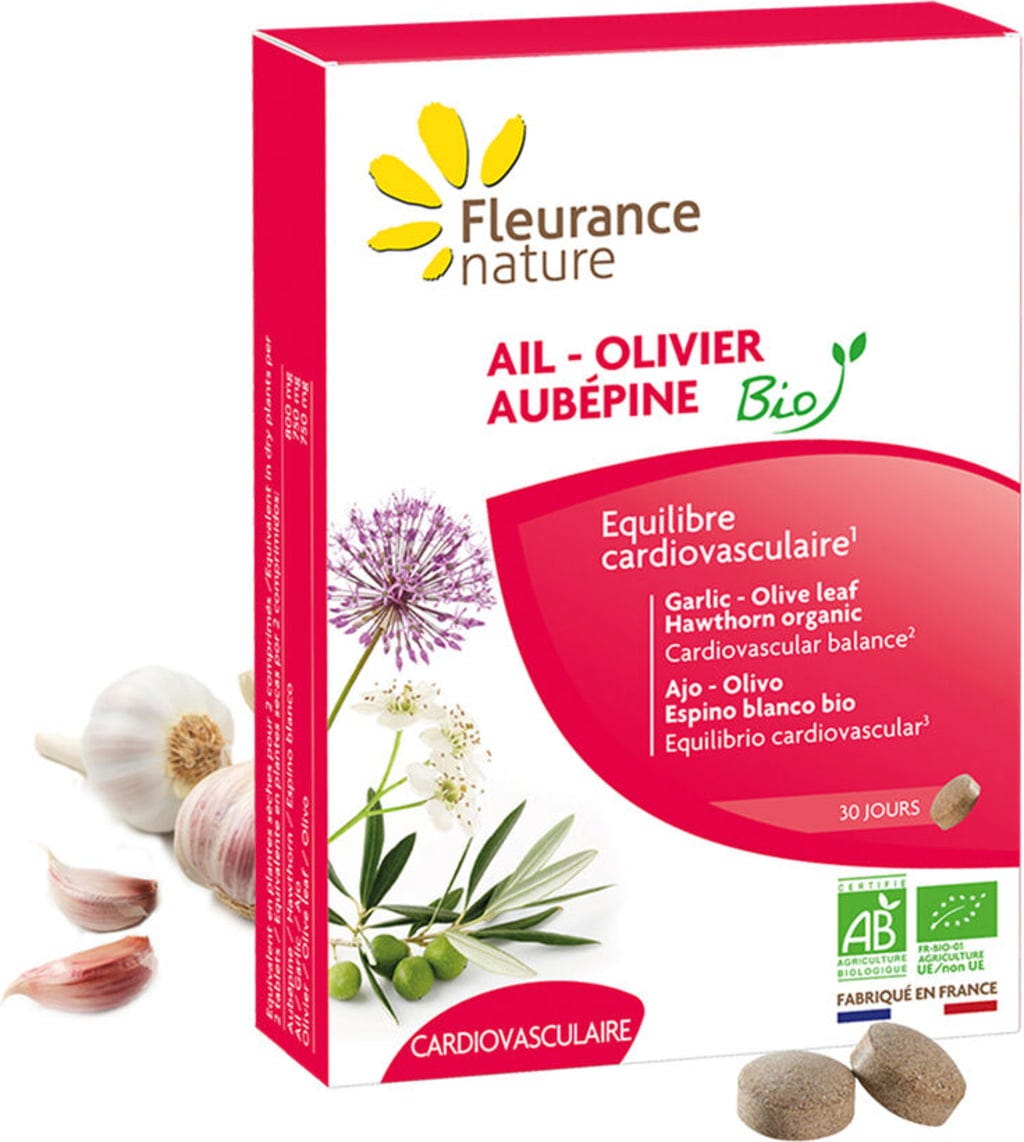 Fleurance nature Biologische Knoflook-Olijf-Meidoorn Tabletten, 60 Tabletten