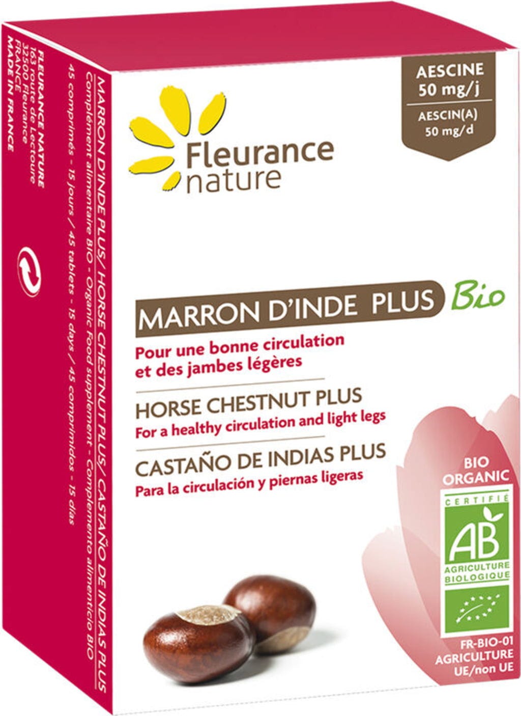 Fleurance nature Biologische Paardenkastanje PLUS Tabletten, 45 Tabletten