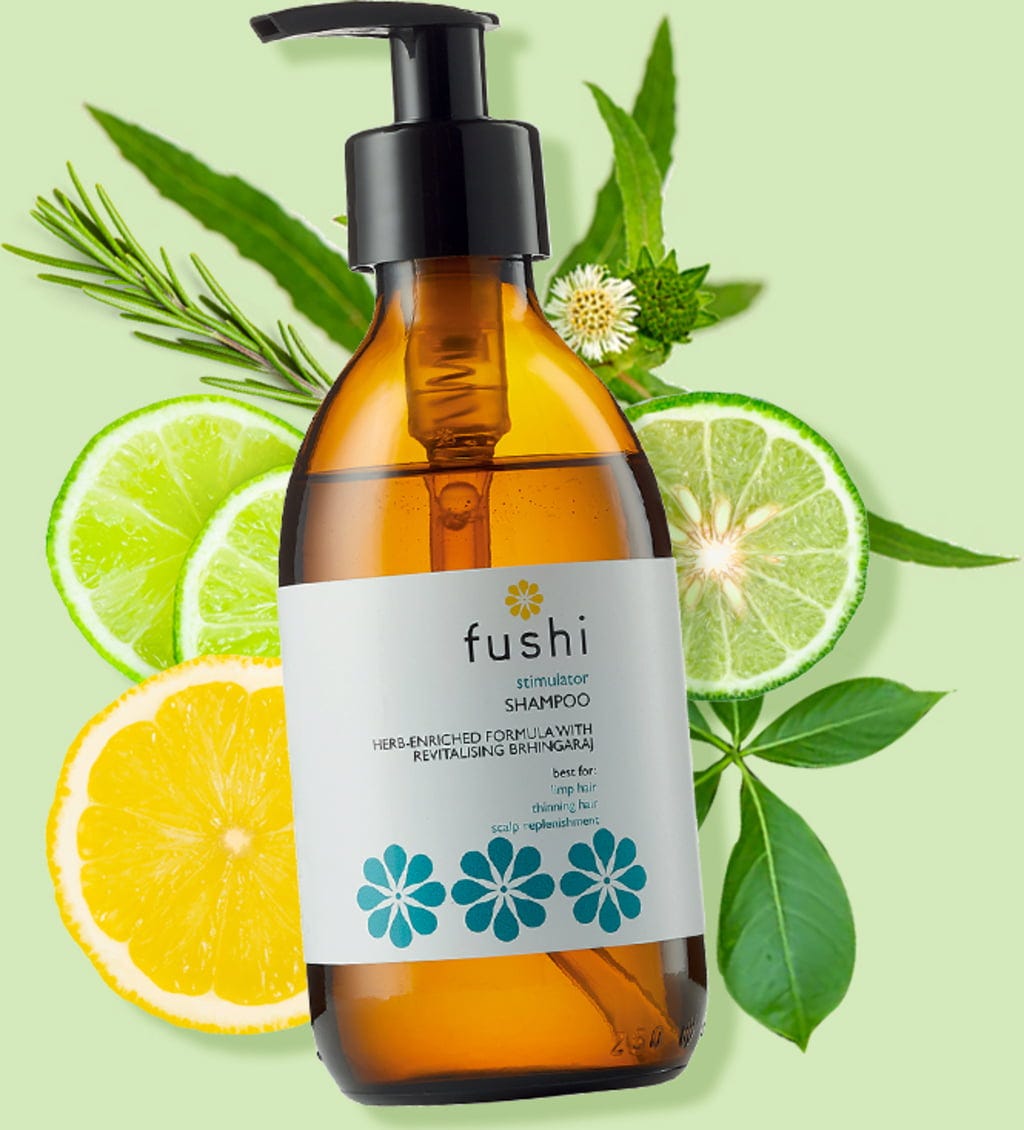 De Stimulator Herbal Shampoo van Fushi is een revitaliserende shampoo die het haar een zijdezachte afwerking geeft en versterkt van wortels tot uiteinden. Bhringraj staat bekend om het stimuleren van de bloedstroom voor gezond uitziend haar terwijl het essentiële voedingsstoffen levert. Laurierbladextract en baobabolie hydrateren zowel de hoofdhuid als het haar intensief tegelijkertijd. Fushi gebruikt puur natuurlijke ingrediënten afkomstig uit de biologische landbouw.