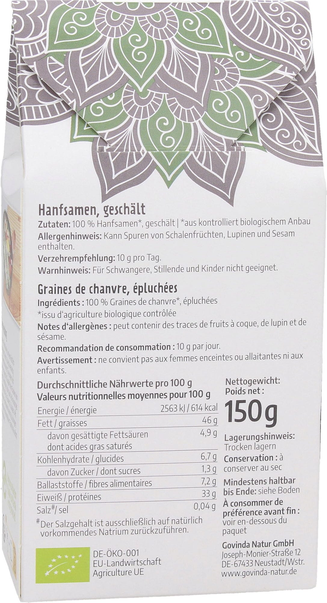 Govinda Bio Hennepzaden, 150 g € 4,69 (€ 31,27 / kg)