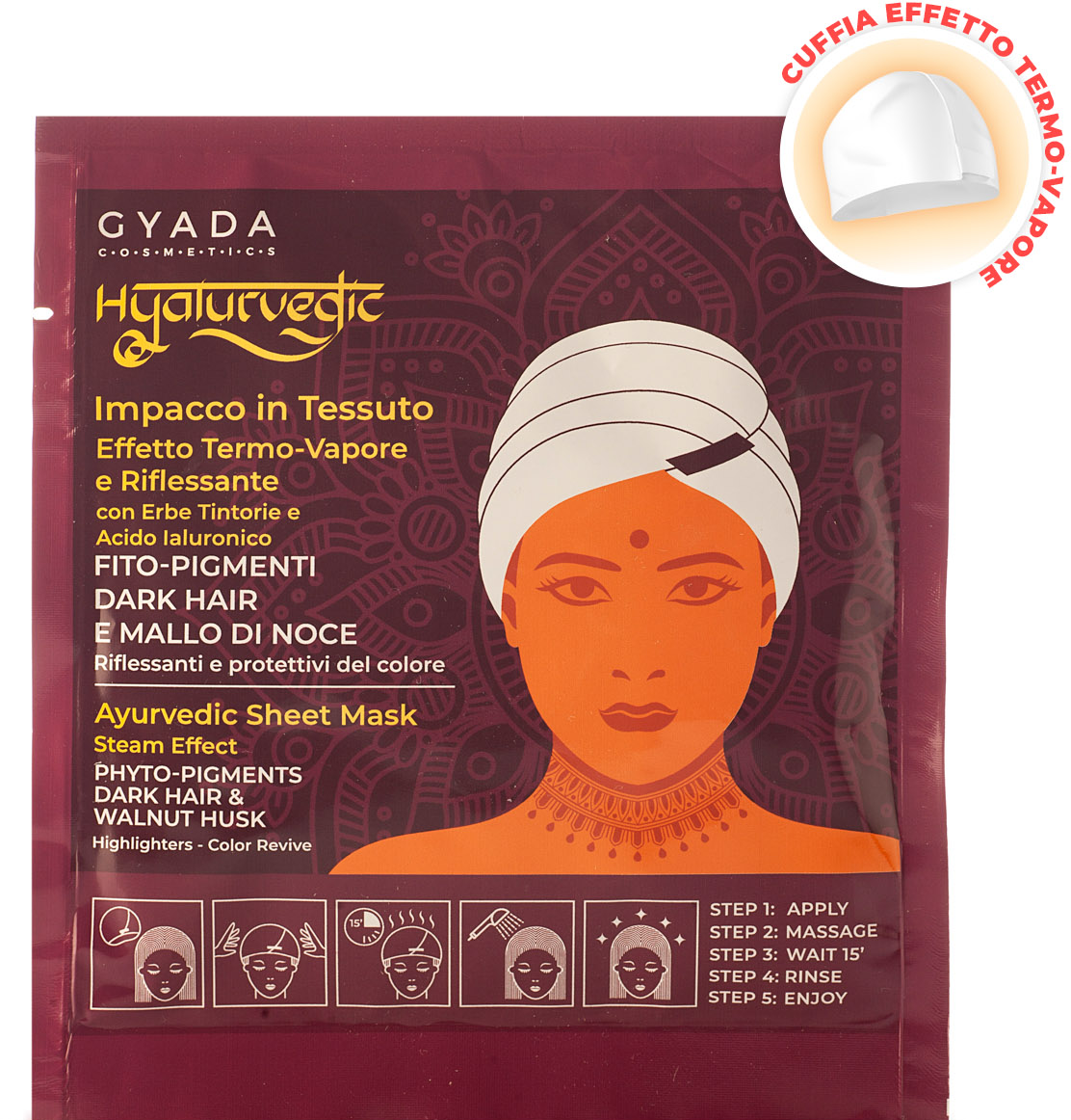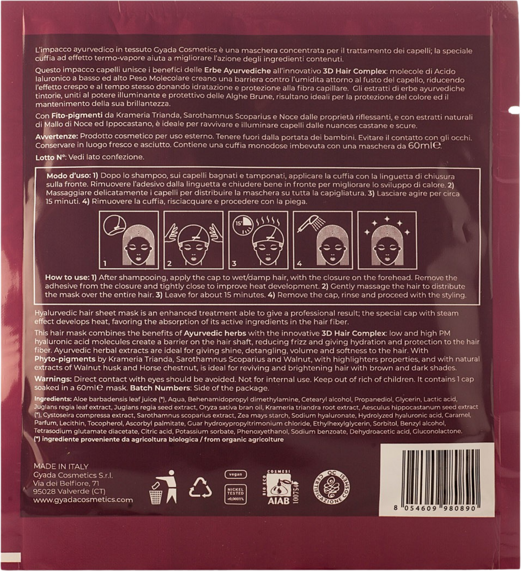GYADA Cosmetics Hyalurvedic Dark Hair Colour Shine Sheet Mask, 60 ml