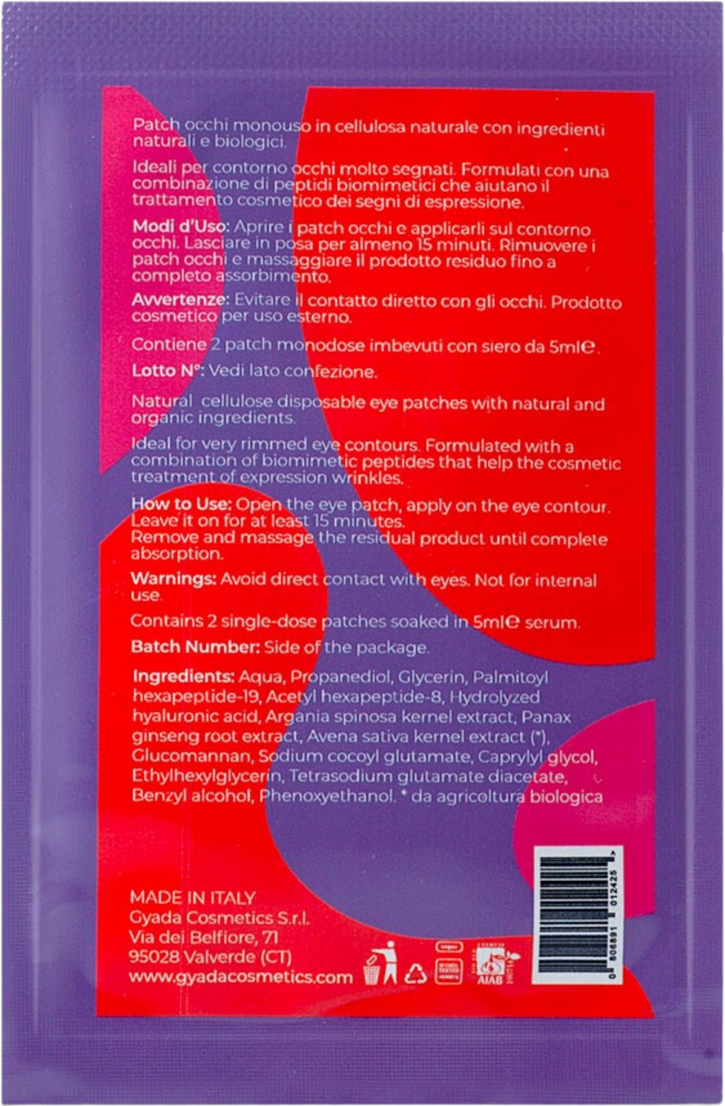 Het plantaardige cellulosemasker is gericht op volwassen huidtypen om het ooggebied op te frissen. Het bevat een anti-verouderingscomplex met een natuurlijke peptidenmix, hyaluronzuur en ginseng. De bionische peptiden gaan expressielijnen tegen.