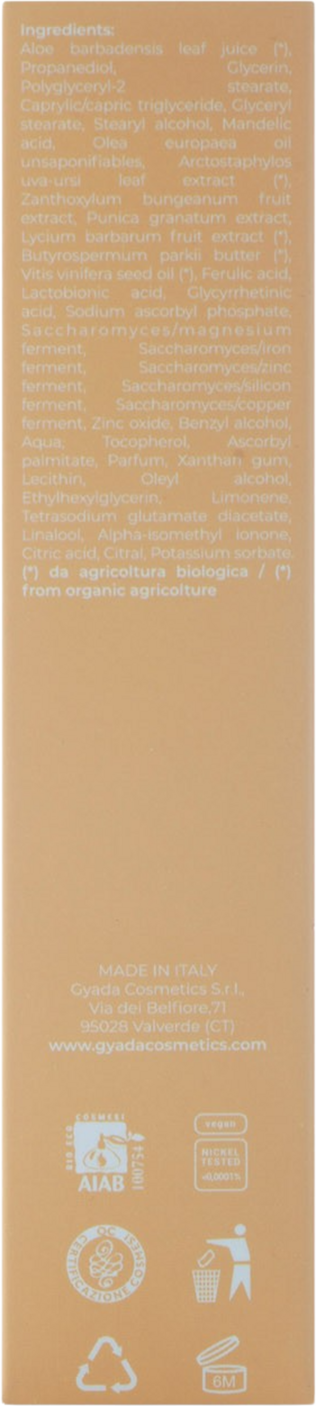 | Fabrikant: | GYADA COSMETICS S.R.L., Via Dei Belfiore 71, 95028, Valverde (CT), Italië, info@gyadacosmetics.com, www.gyadacosmetics.com |