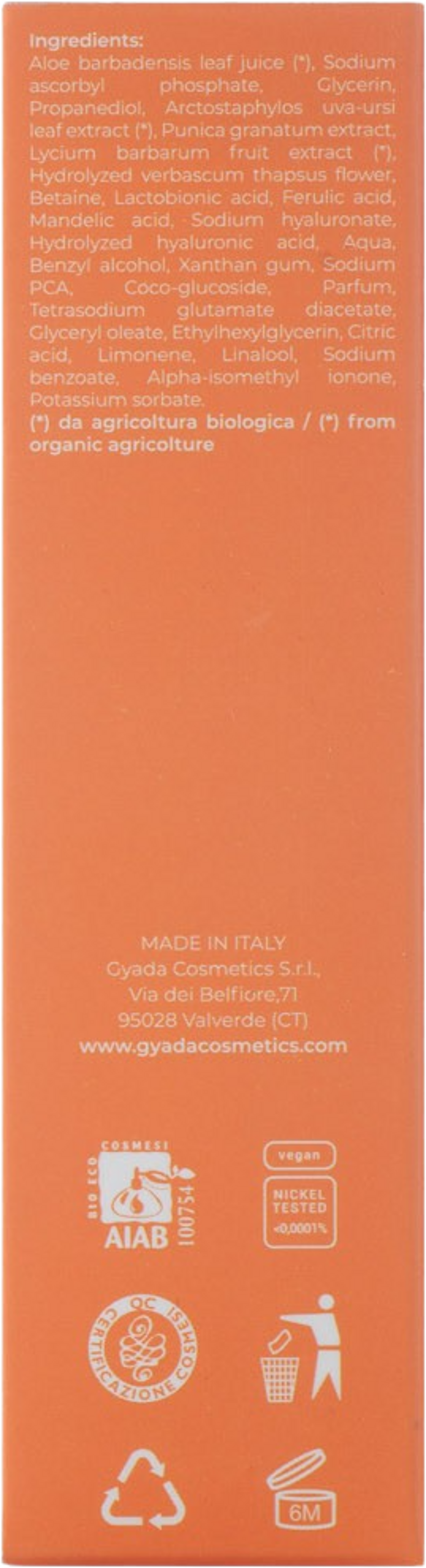 | Fabrikant: | GYADA COSMETICS S.R.L., Via Dei Belfiore 71, 95028, Valverde (CT), Italië, info@gyadacosmetics.com, www.gyadacosmetics.com |