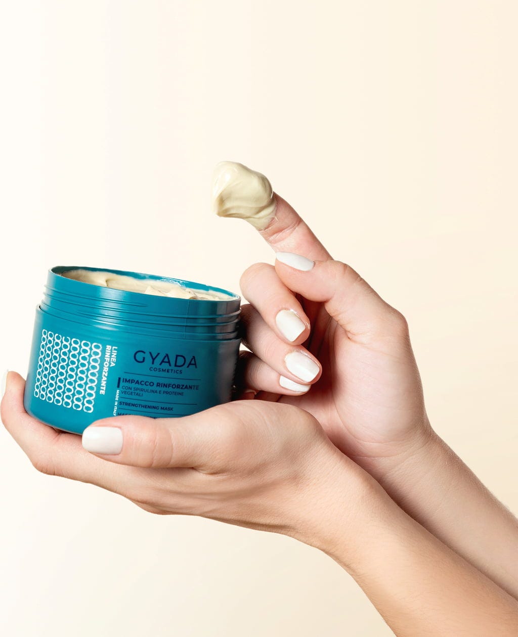 GYADA Cosmetics heeft een haarmasker ontworpen met een concentraat van actieve ingrediënten om broos, beschadigd en dunner wordend haar te remineraliseren en vitaliseren. Het versterkt het haar en gaat haarverlies tegen, evenals de vorming van gespleten haarpunten.
