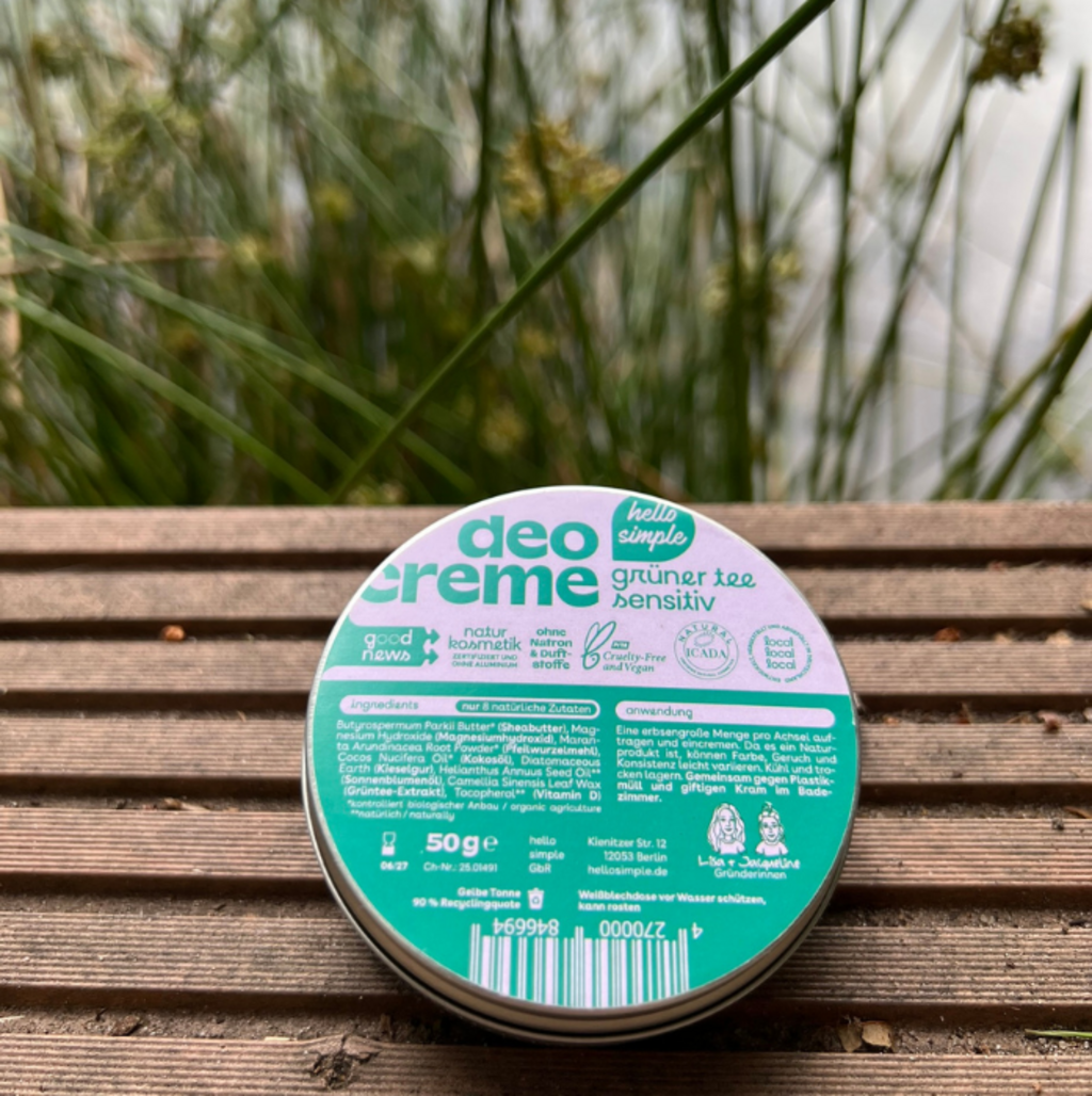 hello simple "Save the Oceans" Sensitive Deodorant Cream - Green Tea, 50 g