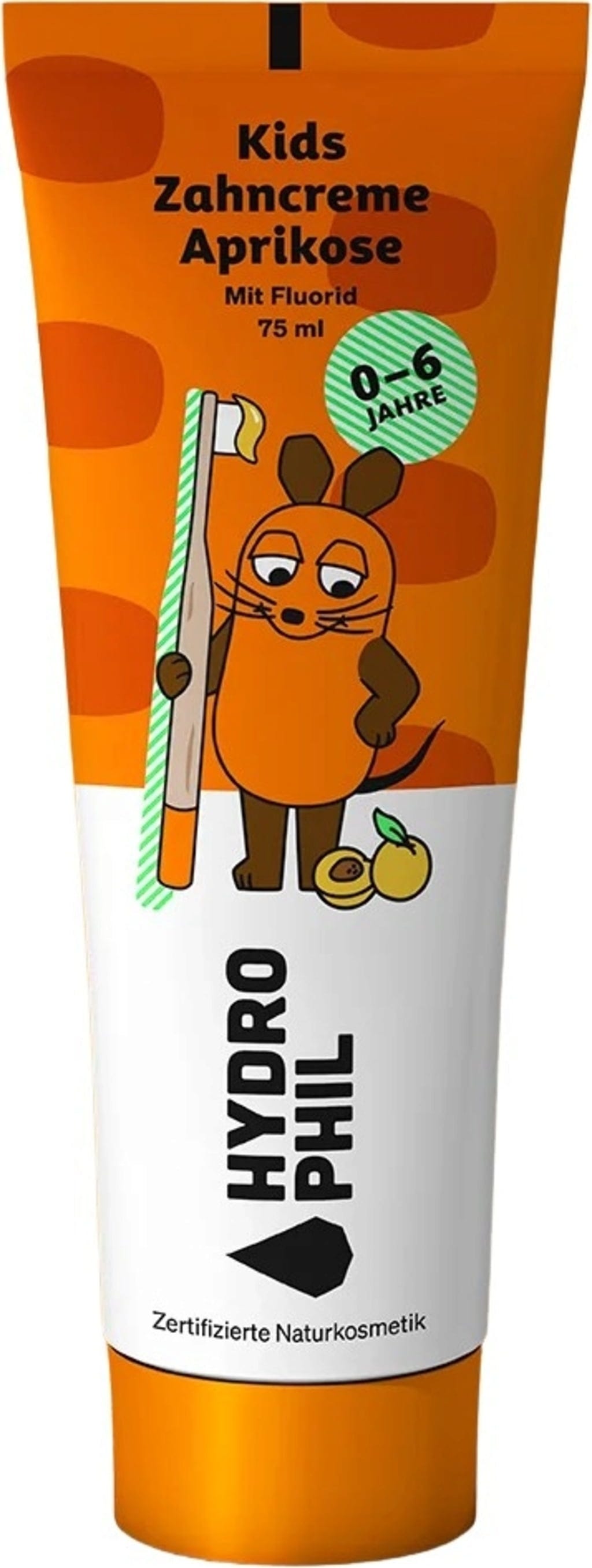 Tanden poetsen met Maus? De fruitige tandpasta van Hydrophil met abrikozensmaak overtuigt zelfs de kleinste en zorgt voor een gezond en sterk gebit. De formule is speciaal ontwikkeld voor kinderen, bevat fluoride en beschermt tegen tandbederf. De tanden worden voorzichtig gereinigd zonder het tandglazuur, dat toch erg gevoelig is, aan te tasten.