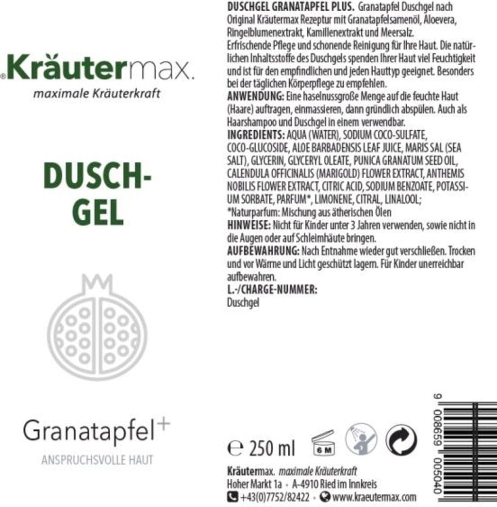Kräutermax Douchegel Granaatappel+, 250 ml