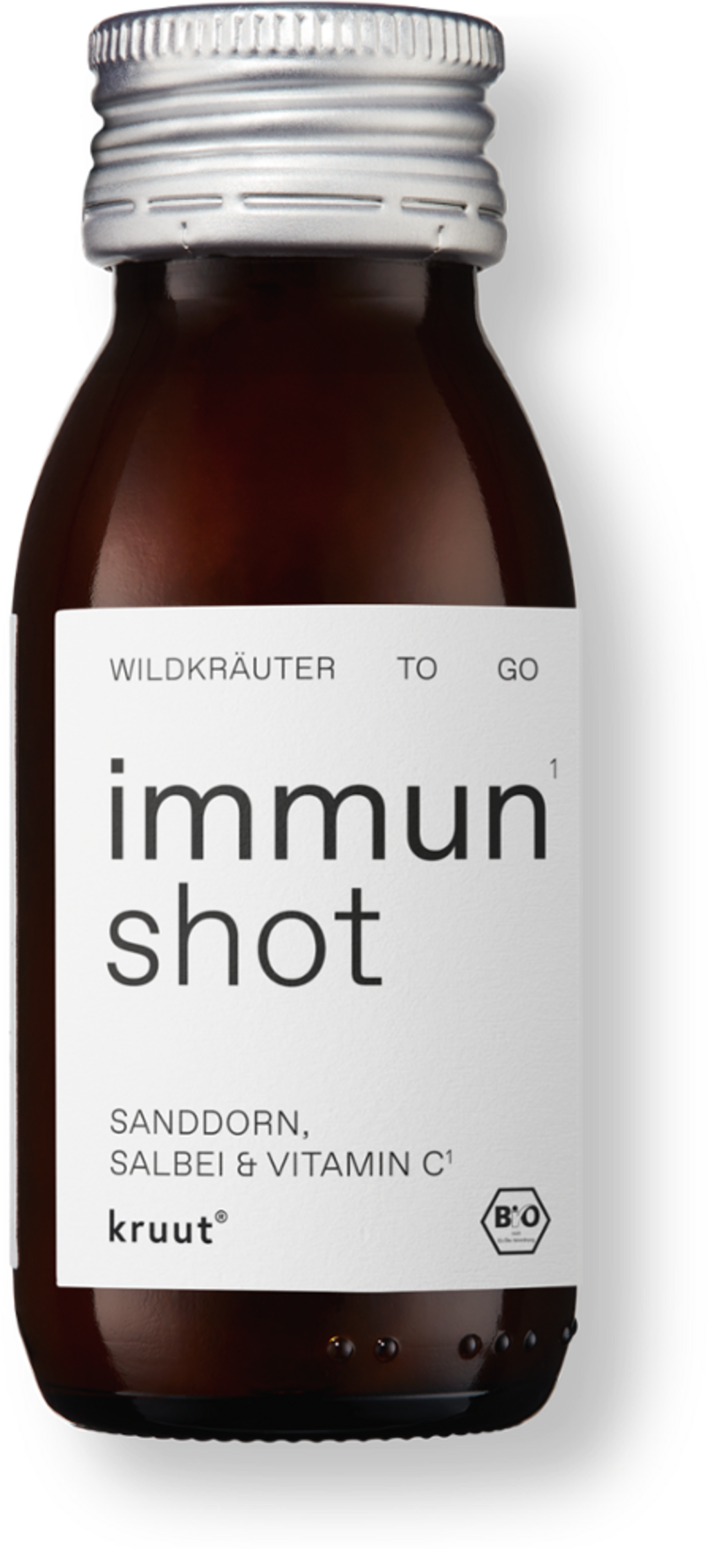 De kruut Immuun Shot Bio is gebaseerd op een beproefd recept van troebele Demeter-appelazijn en rauwe bloemenhoning, gecombineerd met fruitige duindoorn. Het vloeibare kruidenmengsel bevat extracten van rozenbottel, wilde tijm, salie en smalle weegbree.