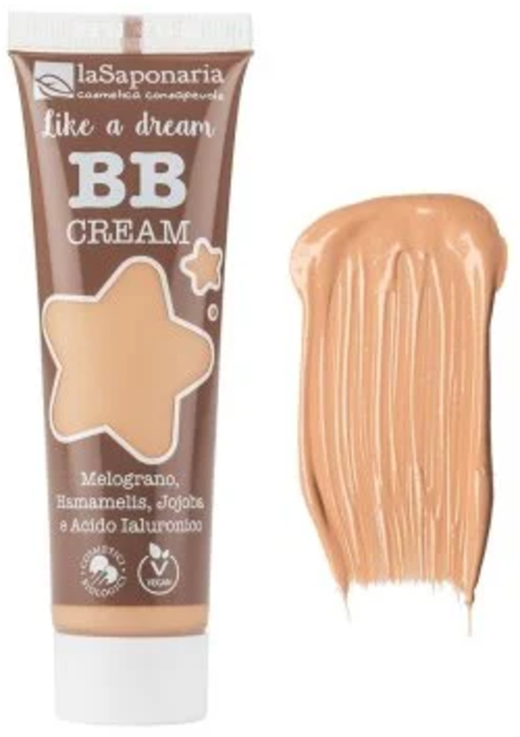 La Saponaria's veganistische "Like a Dream" BB Cream bevat granaatappelwater, toverhazelaar en jojoba-olie, evenals hyaluronzuur, egaliseert de teint en geeft de teint een mat uiterlijk. De lichte formule is geschikt voor alle huidtypes. De verschillende tinten passen zich aan de individuele huidskleur aan voor een frisse en natuurlijke make-uplook. De BB Cream is super eenvoudig aan te brengen en biedt een medium dekking. Het neutraliseert roodheid en verbergt kleine imperfecties. Voor een gelijkmatige en matte afwerking.