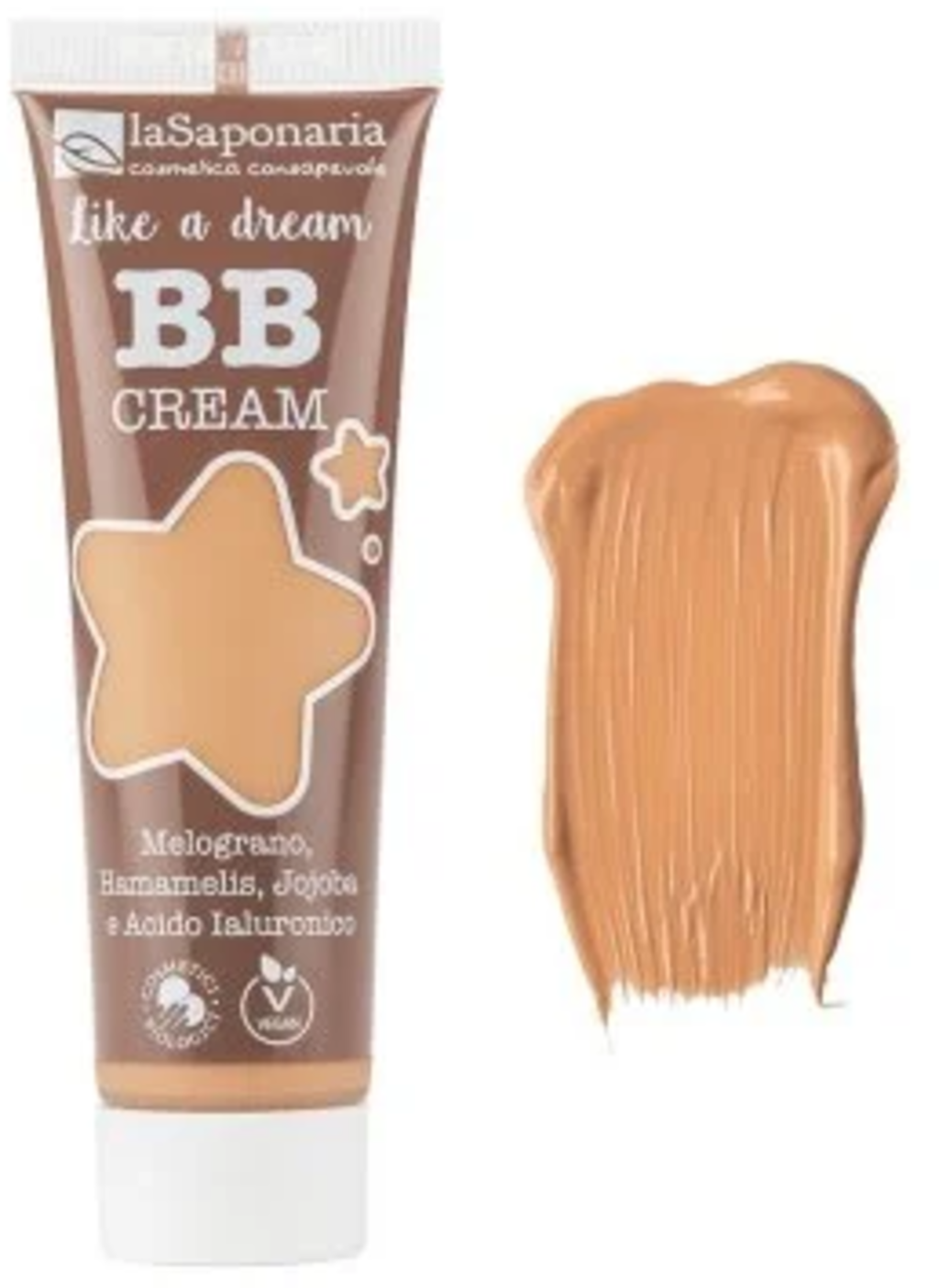 La Saponaria's veganistische "Like a Dream" BB Cream bevat granaatappelwater, toverhazelaar en jojoba-olie, evenals hyaluronzuur, egaliseert de teint en geeft de teint een mat uiterlijk. De lichte formule is geschikt voor alle huidtypes. De verschillende tinten passen zich aan de individuele huidskleur aan voor een frisse en natuurlijke make-uplook. De BB Cream is super eenvoudig aan te brengen en biedt een medium dekking. Het neutraliseert roodheid en verbergt kleine imperfecties. Voor een gelijkmatige en matte afwerking.