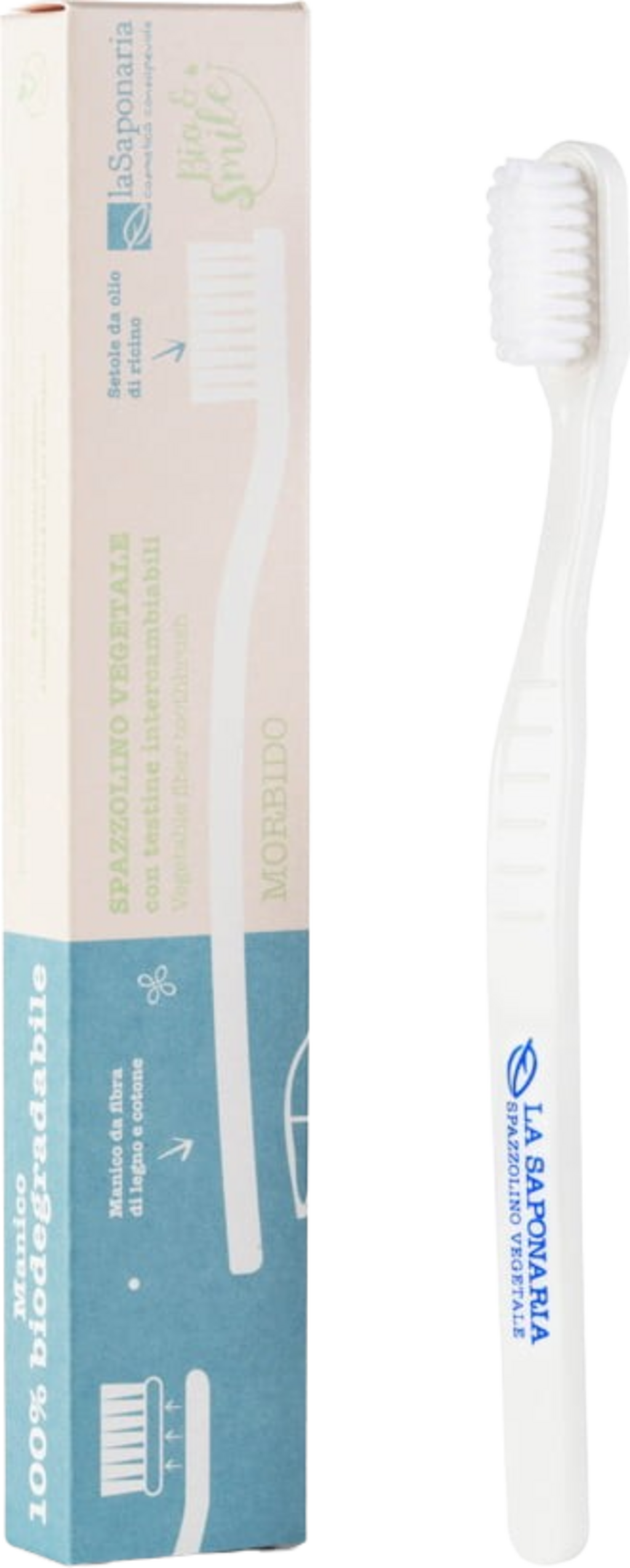 Deze duurzame tandenborstel bestaat uit natuurlijke, hernieuwbare grondstoffen en is ideaal voor een optimale mondhygiëne. Het handvat is gemaakt van houtpulp en katoenvlokken, de borstelharen van castorolie.