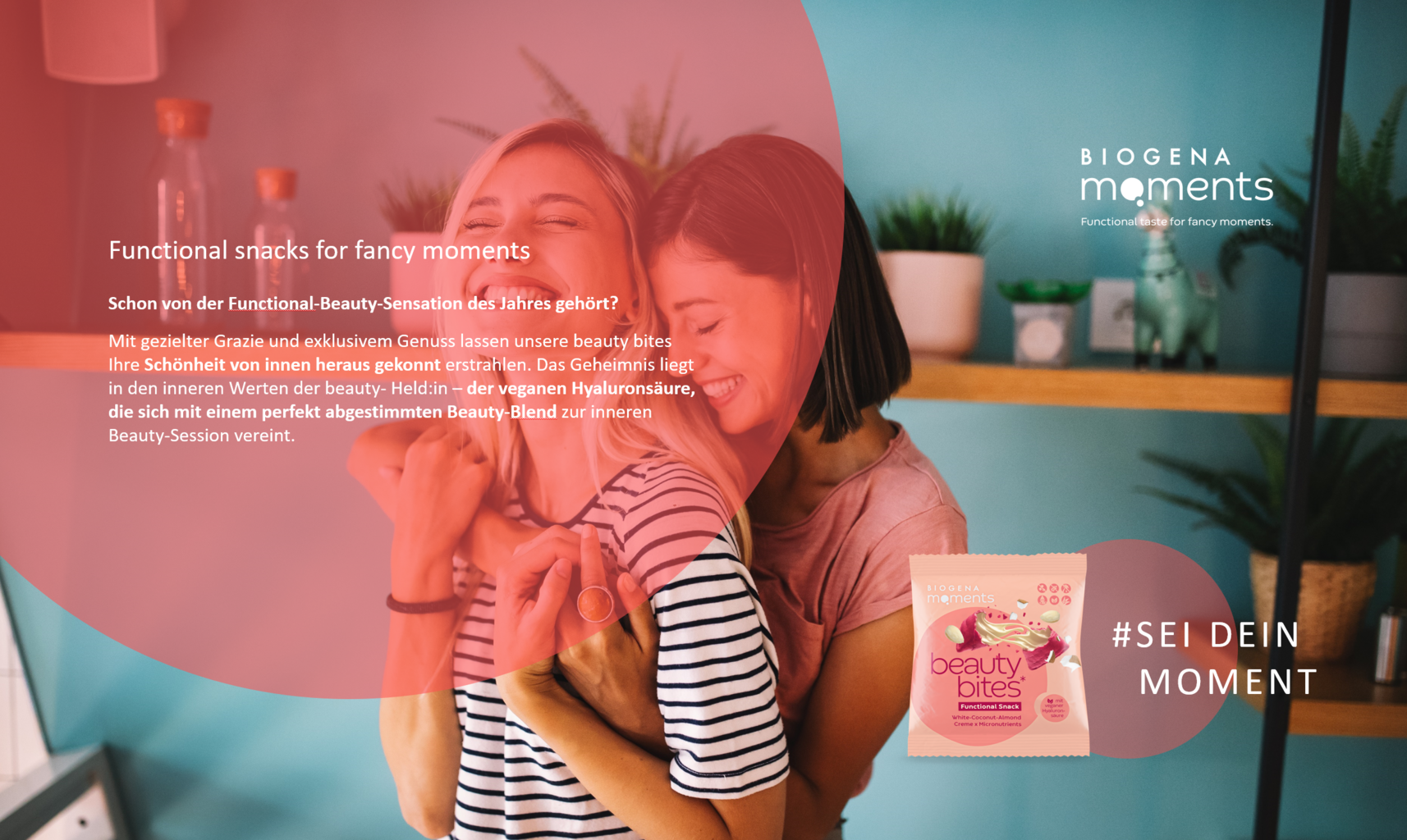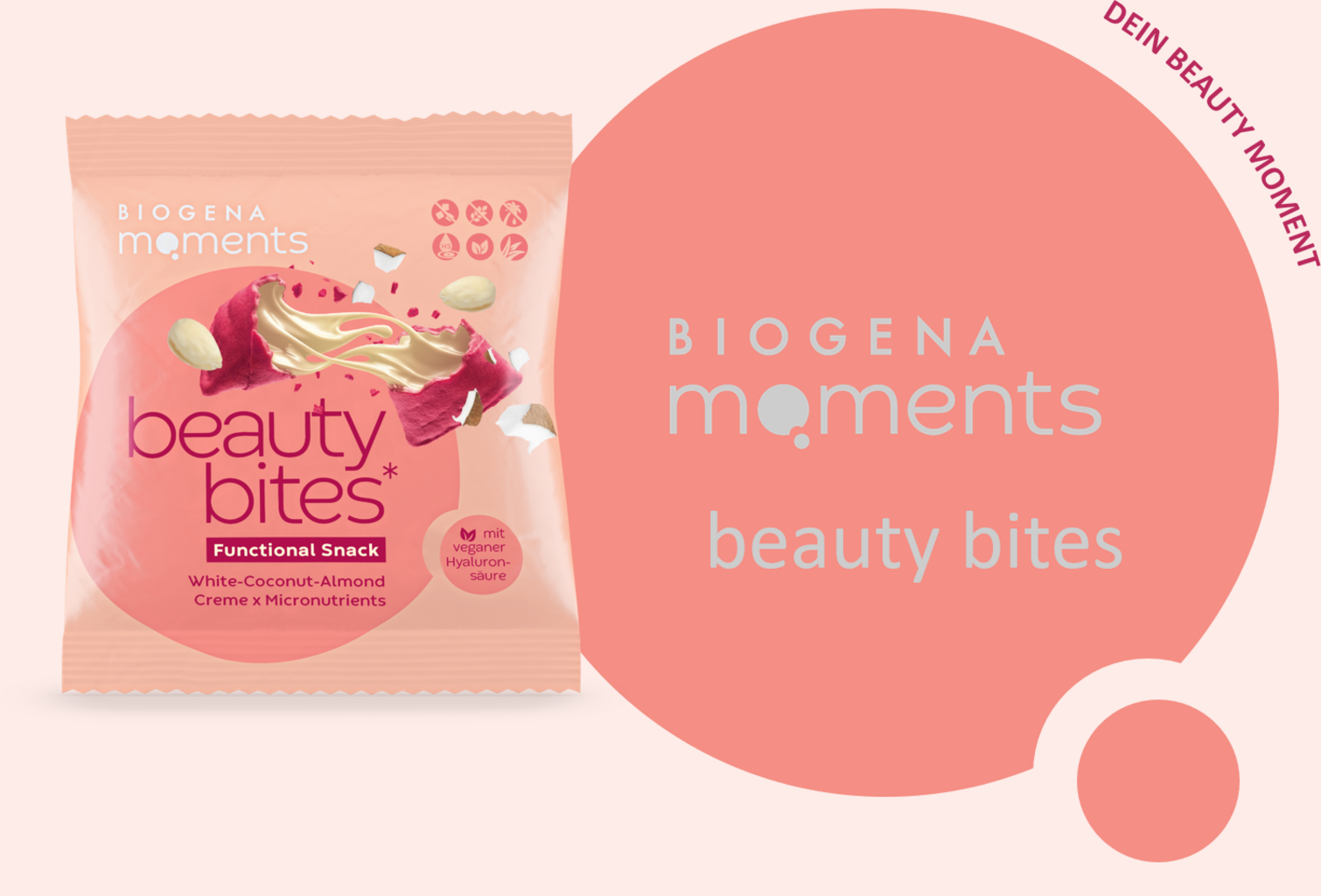 Naast 100% smaak zit het boordevol micronutriënten om trots op te zijn. Vegan hyaluronzuur, vitamine A, vitamine E, biotine en zink maken de beauty bites tot wat ze zijn - een functionele snack van Moments by Biogena.