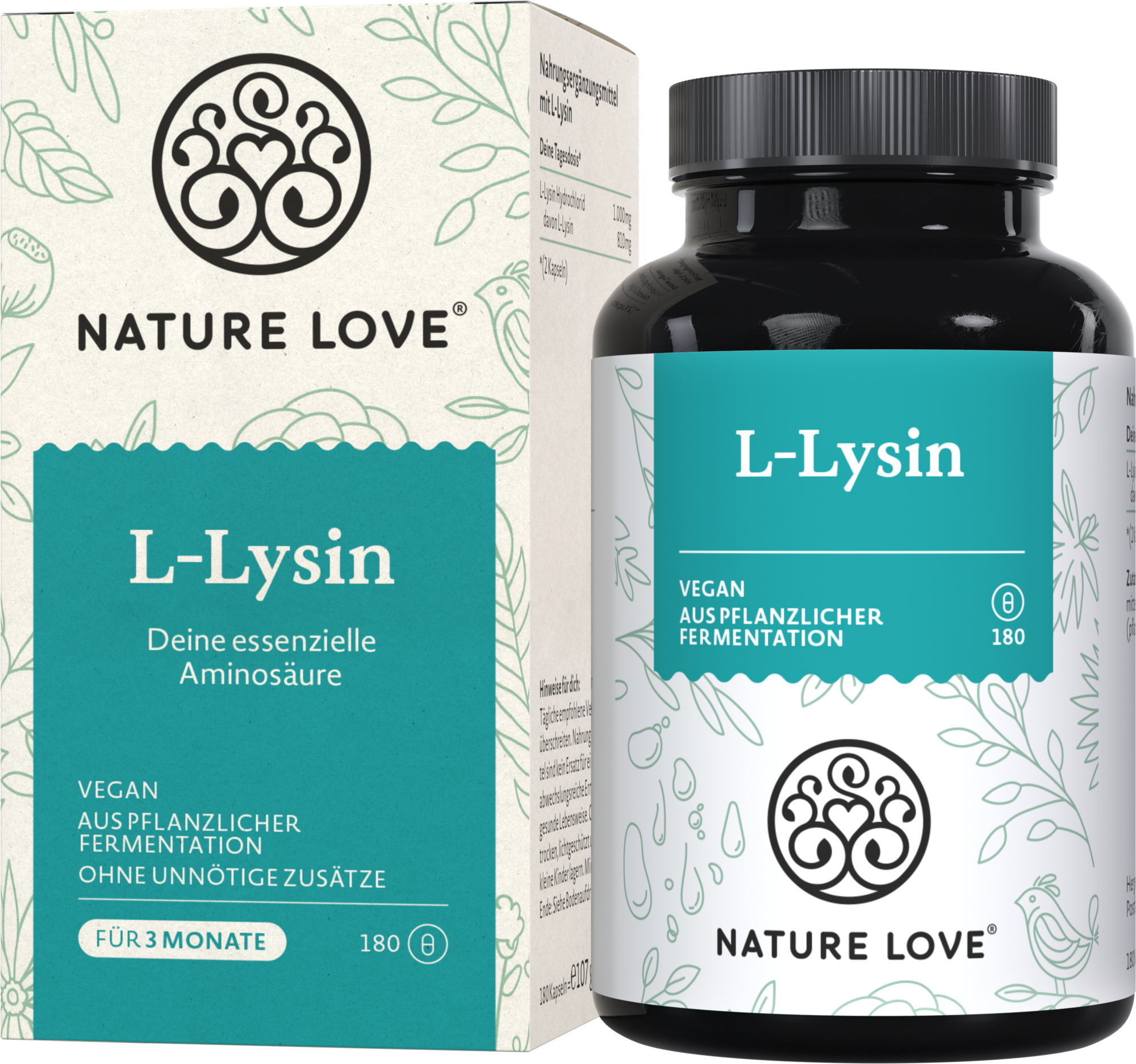 Zelfs in stressvolle tijden zorg je eenvoudig voor je dagelijkse behoefte aan het essentiële aminozuur L-lysine. Met Nature Love capsules krijg je 1000 mg L-lysine HCL uit plantenfermentatie per dagelijkse dosis - zonder onnodige toevoegingen.