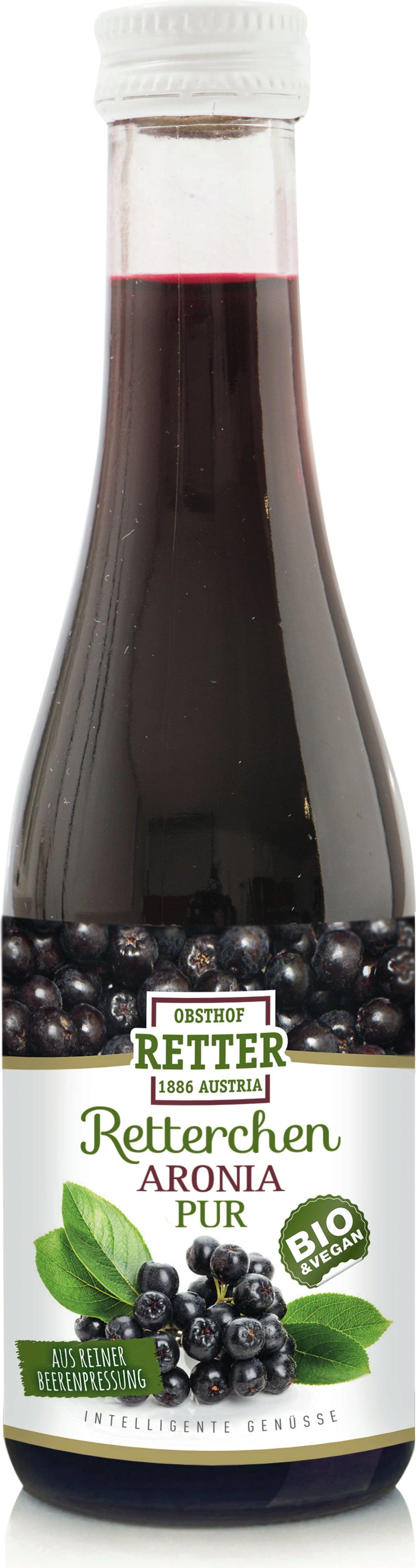 • Het Bio Aronia Superfruitsap is een puur natuurlijk product en wordt vervaardigd volgens het speciaal ontwikkelde productieproces van RETTER.