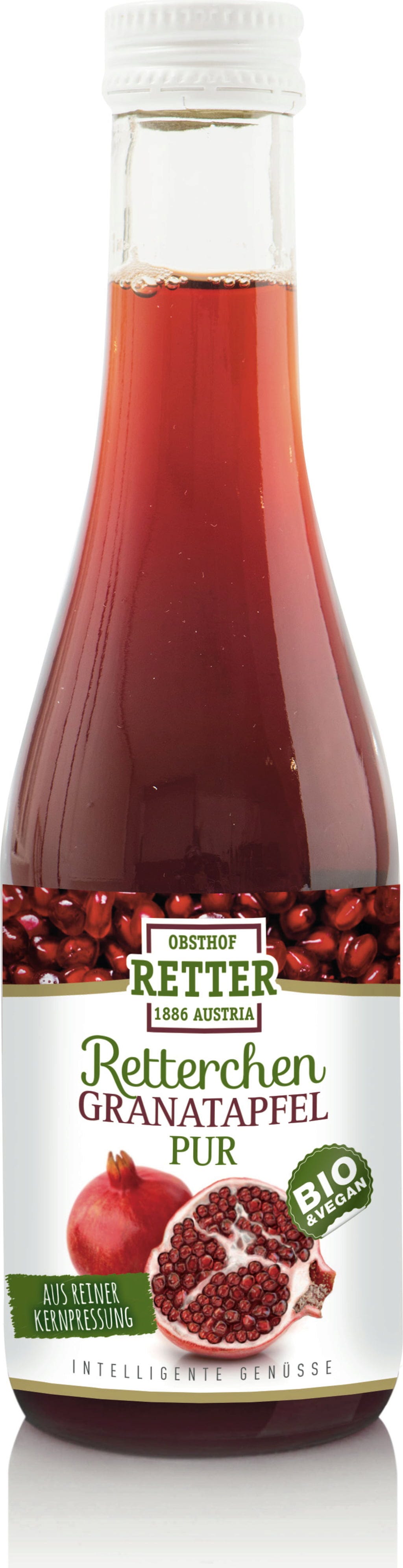 100% granaatappelsap van Obsthof Retter is een puur natuurlijke smaakbeleving die lichaam en geest weer op gang brengt.
