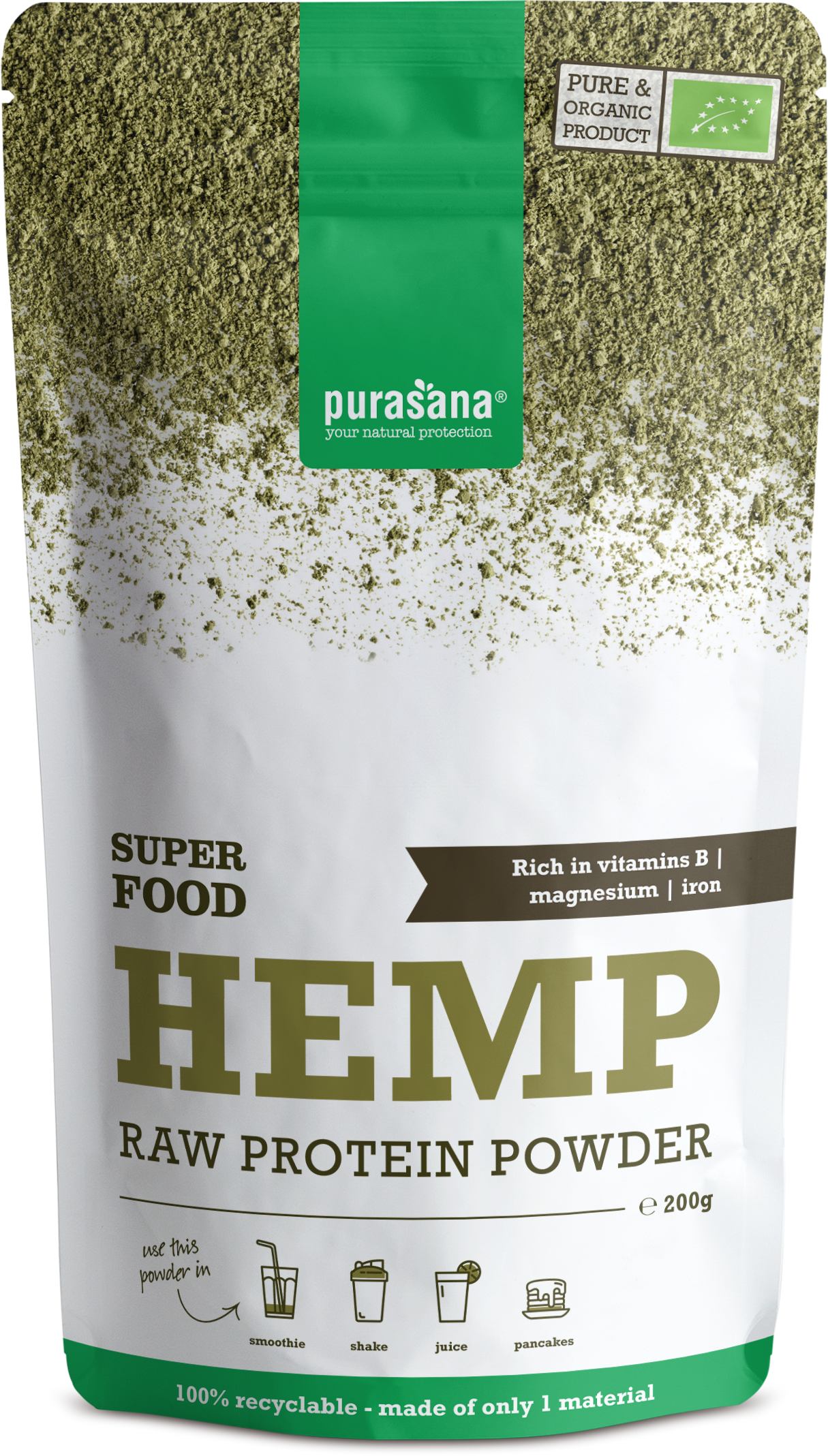 Purasana's biologische hennepproteïnepoeder is een plantaardige eiwitbron. Het is van nature rijk aan eiwitten, vezels, vitamines en fytochemicaliën.